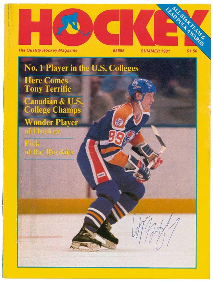 Two different magazine covers, both from 1981, each signed in blue ballpoint by Gretzky. In fine condition. Pre-certified Steve Grad/PSA/DNA and RRAuction COA.