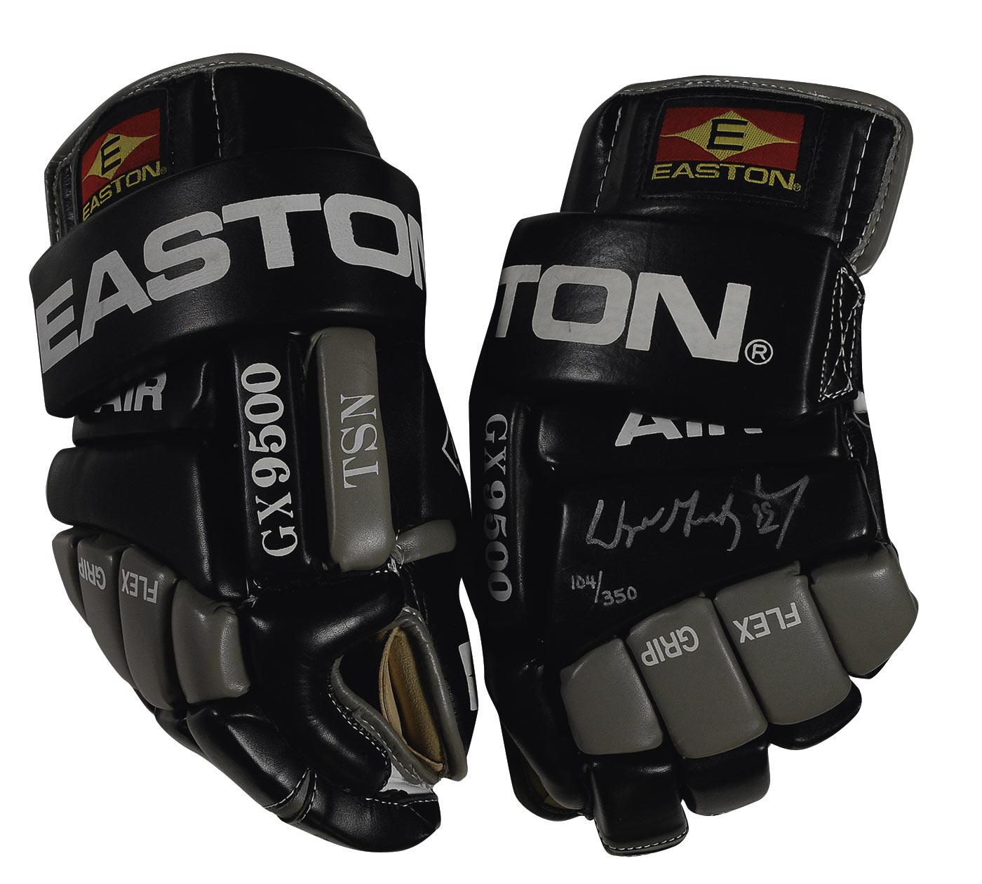 Limited edition pair of Easton GX 9500 hockey gloves, #104/350, signed in silver ink on the left-handed glove. Accompanied by a certificate of authenticity from Upper Deck. In very fine condition. Pre-certified Steve Grad/PSA/DNA and RRAuction COA.