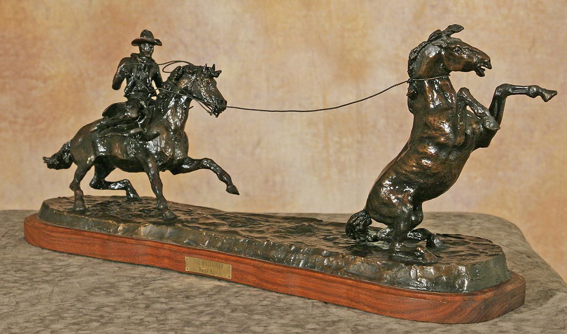 Wayne Hunt (1904-1977) CA. The Mustanger. 9" x 20" x 5" bronze #10/15. Signature inscribed: © Wayne Hunt CA. (est. $2,000-3,000). CONDITION REPORTS: www.auctioninsantafe.com/docs/cr2012.pdf