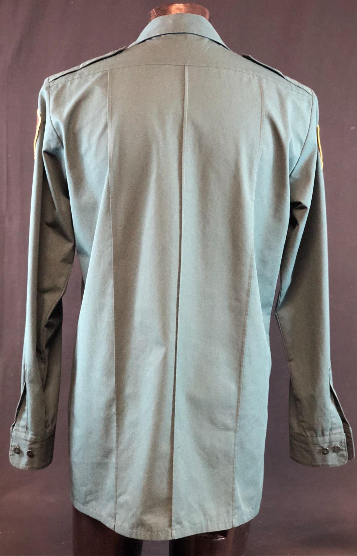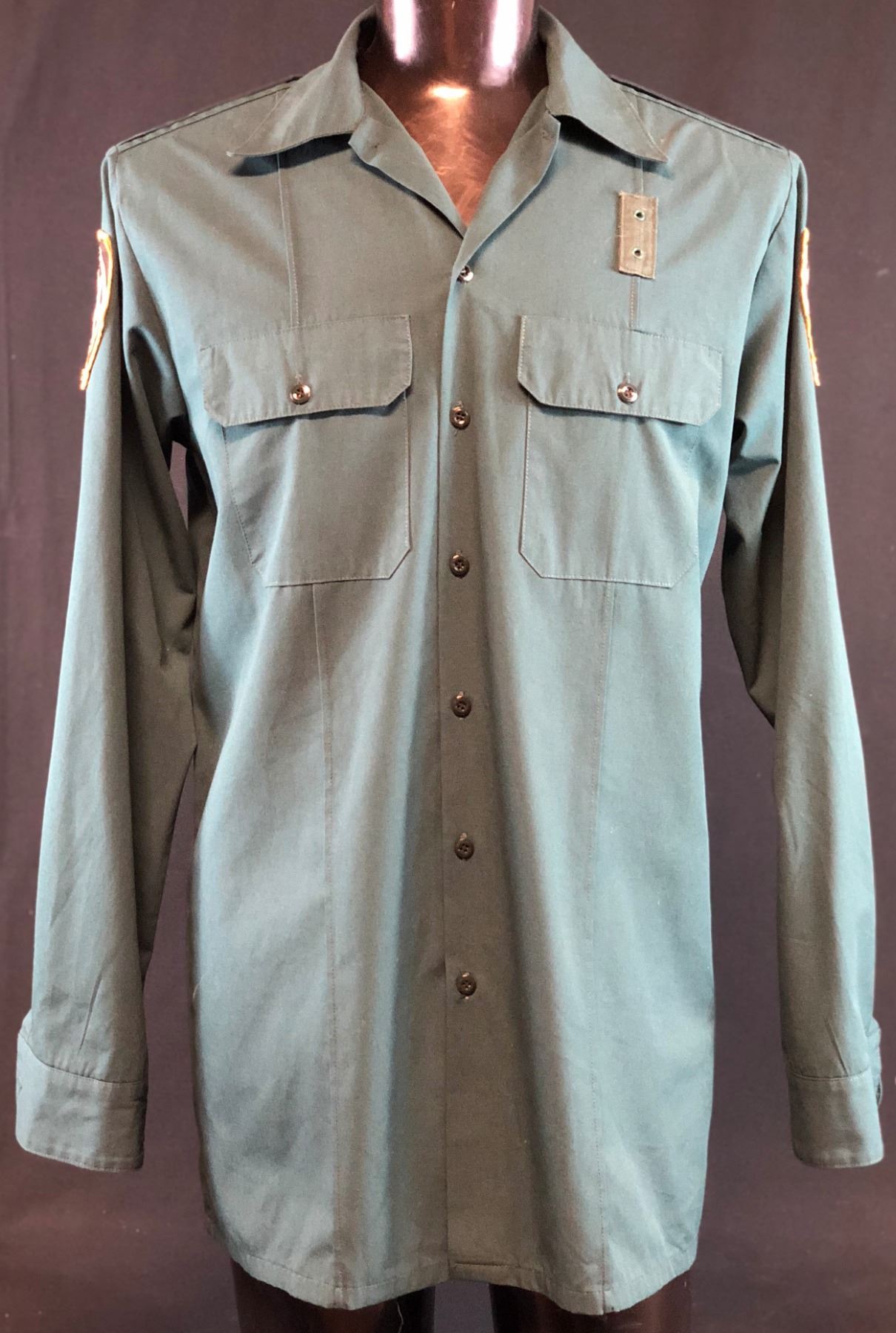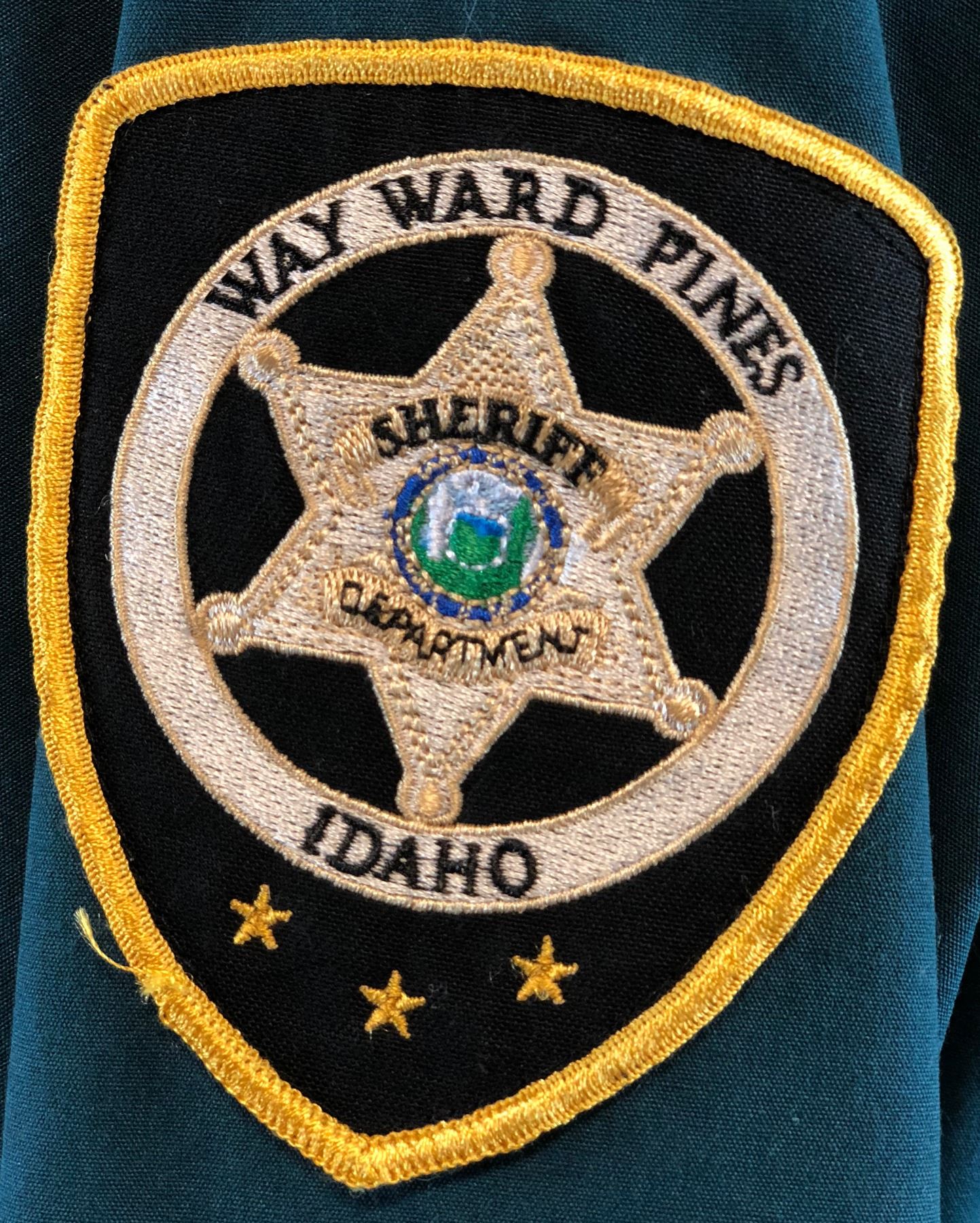 Original screen worn Wayward Pines police sheriff uniform shirt worn by "Sheriff Pope", played by Terrence Howard in the mystery, science fiction television series "Wayward Pines" (2015–2016), based on the Wayward Pines novels by Blake Crouch, where a Secret Service agent goes to Wayward Pines, Idaho, in search of two federal agents who have gone missing in the bucolic town. He soon learns that he may never get out of Wayward Pines alive. Developed for television by Chad Hodge, the pilot was directed by M. Night Shyamalan, with both as executive producers.