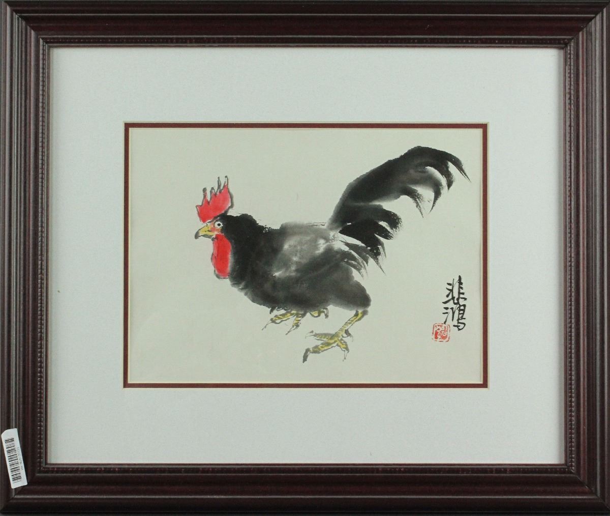 Rooster; Chinese ink and watercolour on paper; framed; signed Xu Beihong and inscribed with one artist seal; 38 cm x 46 cm
