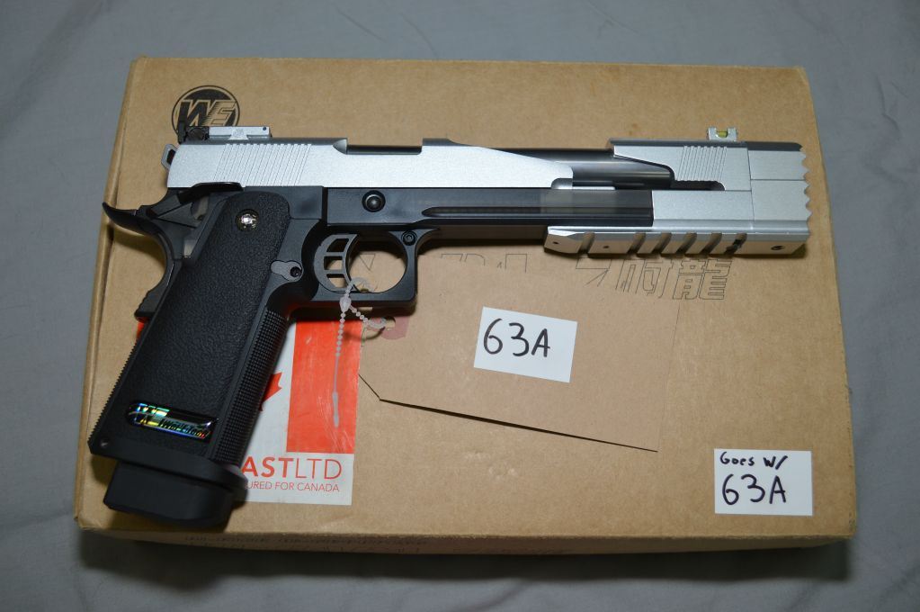 We Hi-Capa 5.1 gas powered BB pistol modelled after a high-tech steel challenge 45ACP No PAL required