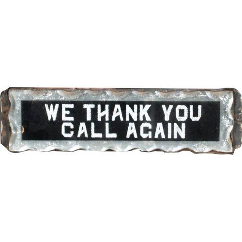We Thank You / Call Again Mercantile Sign 1930's Reverse on Glass w/ metal back