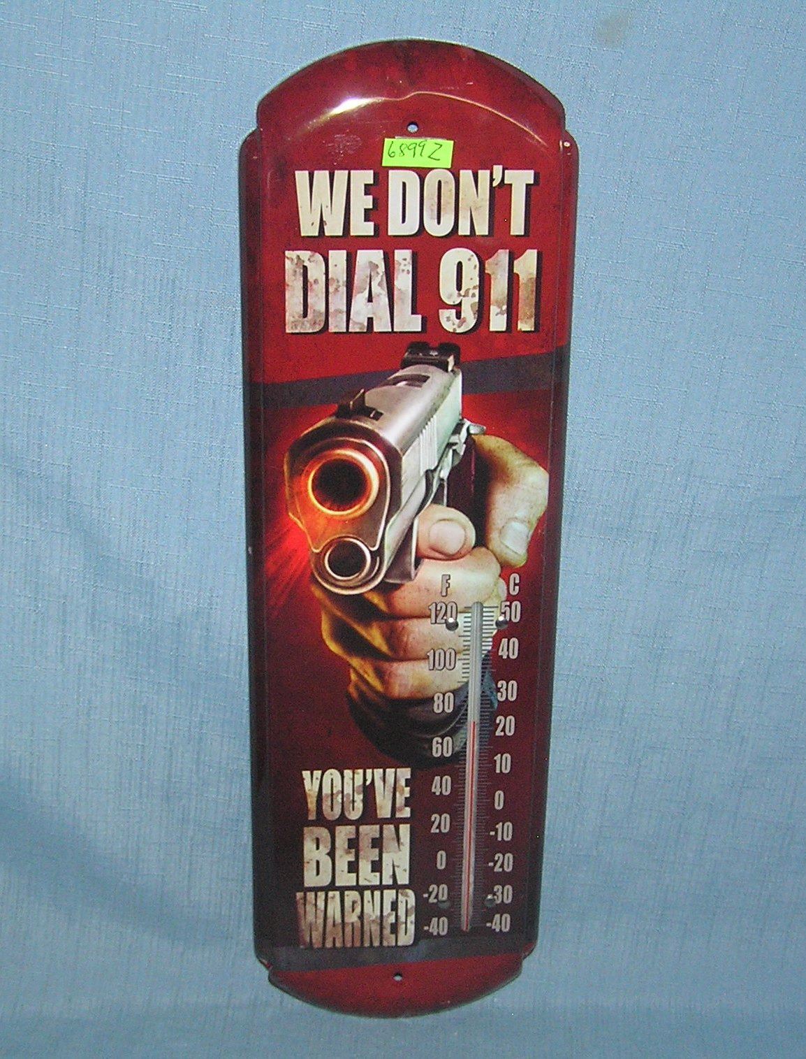 We don't dial 911 metal thermometer sign est. value $40.00-$50.00