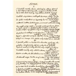 Keltezés nélkül [1943 körül], egy beírt oldal egy 340x219 mm méretu levélen. A három 9 és egy 11 soros (példányunknál), négy, római számozású versszakból álló költemény eloször 1946-ban, az Elysium címu verseskötetben, majd 1956-ban a Hallgatás tornya címu kötetben jelent meg „Menyekzoi kar” címen, de bekerült az 1974-ben megjelent 111 vers címu kötetbe is. Autograph of the poem „Nászdal” written by Hungarian poet Sándor Weöres. One page ink.