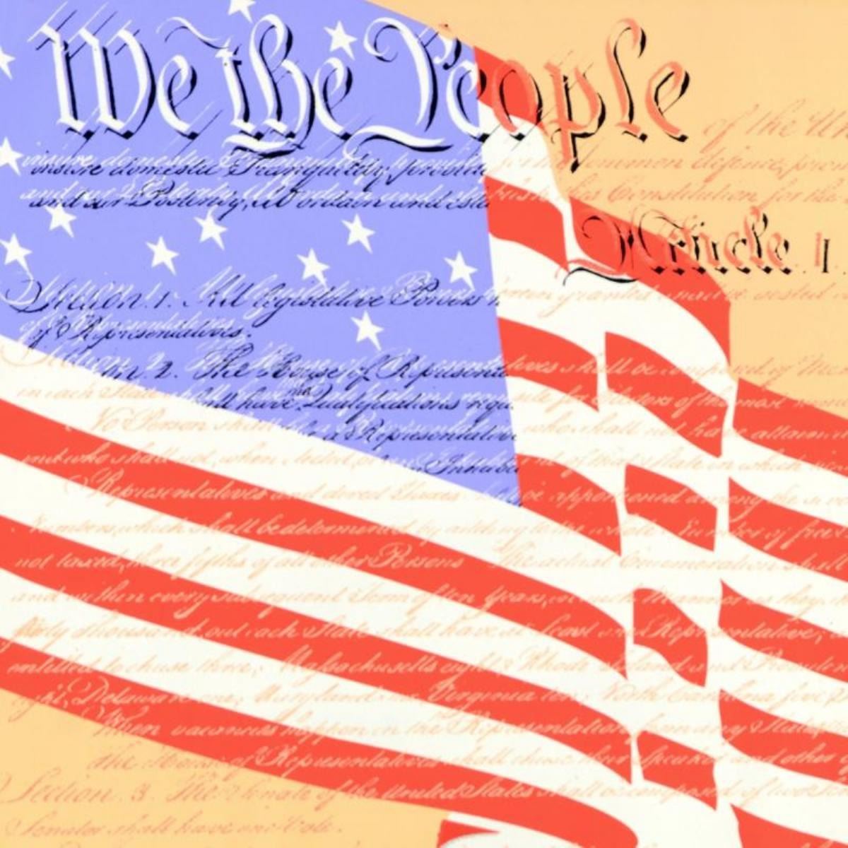 We the People by Steve Kaufman (1960-2010). "We the People" is a hand pulled limited edition silkscreen on canvas by Andy Warhol protege Steve Kaufman (1960-2010). This piece is AP numbered 43/50 and hand signed inverso. Includes letter of authenticity. Measures approx. 24" x 24" (image). This piece has creases in the border area due to being previously stretched.