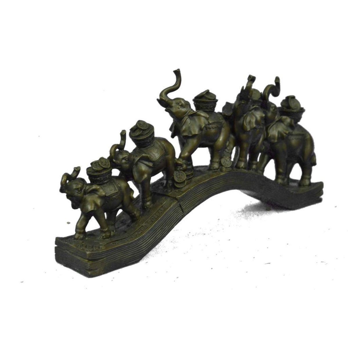 Wealth, Luck & Prosperity Elephants Crossing a Bridge, lost wax casting bronze. 7" H X 14" W. 8 lbs. Â