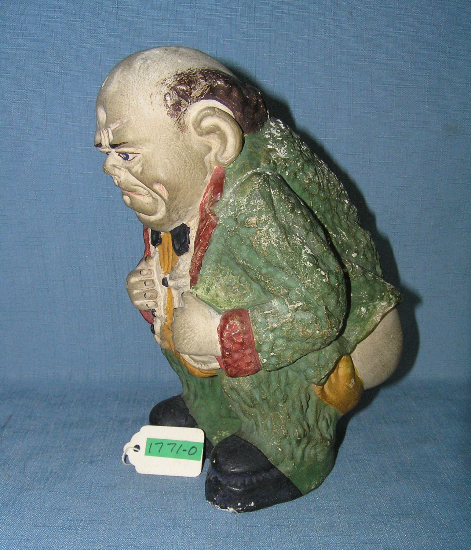 Wealthy sophisticated old man deficating bank all hand painted composition circa 1930s est. value $1400.00-$1500.00