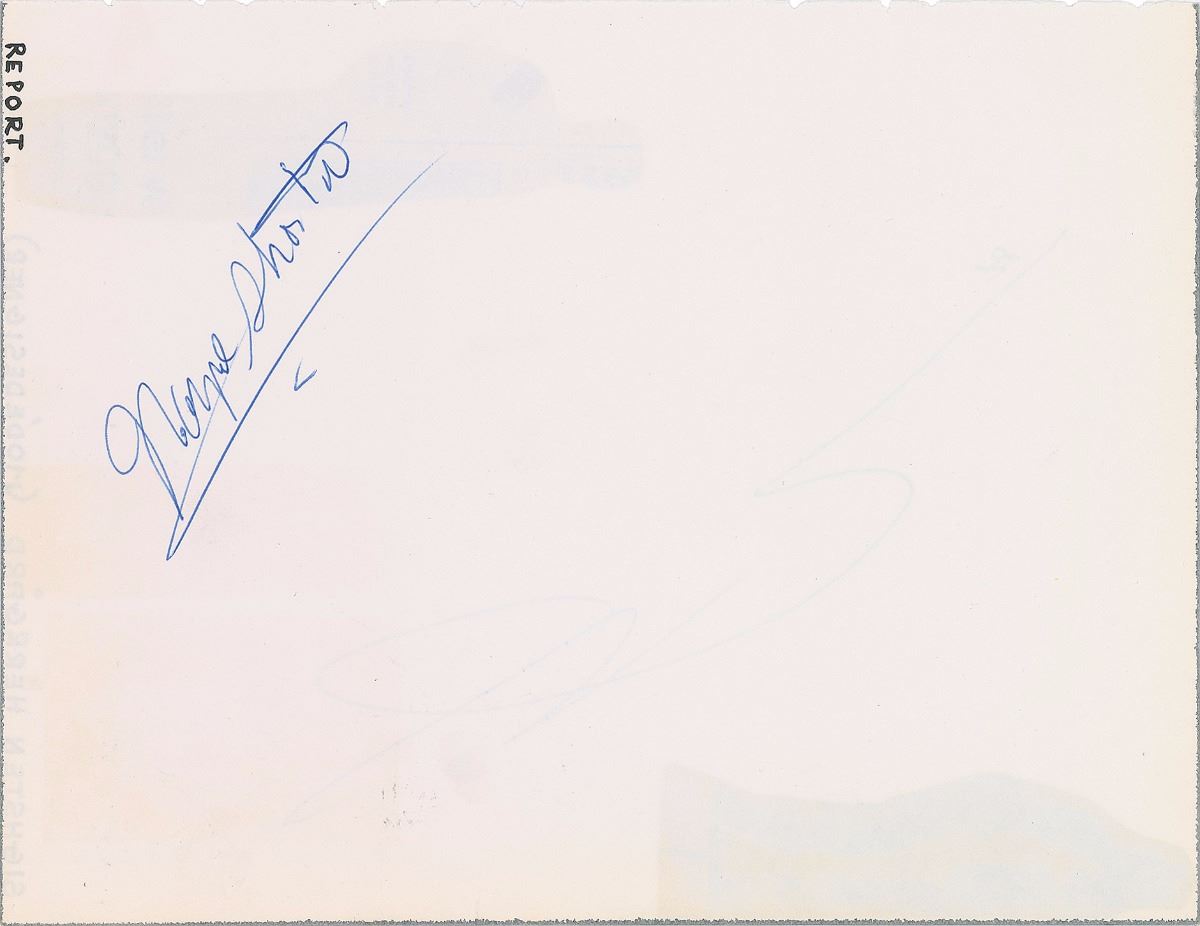 All lots sold by RR Auction are accompanied by an Auction Certificate (“AC”). On any lot presented with an AC issued by RR Auction, the certification is only as to its attribution to the person or entity described or to the lot's usage and only as explicitly stated therein (the “Certification of Authenticity”), to the exclusion of any other warranties, express or implied, including but not limited to those pursuant to the Uniform Commercial Code. The Certification of Authenticity inures only to the original Bidder (as shown in RR Auction's records). Bidder may not transfer, assign, or otherwise convey the Certification of Authenticity, and such purported transfer, assignment, or conveyance shall be null and void. The Certification of Authenticity is valid from date of the Auction in which Bidder was awarded the lot (the “Auction Date”) until five (5) years after the Auction Date, without exception.
