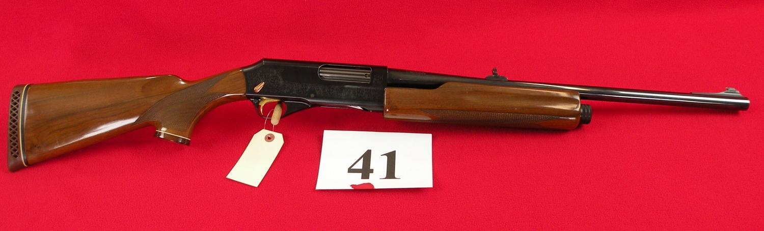 22" Smooth Slug Barrel With Rifle Sights. High Gloss Checkered Pistol Grip Stock, Gold Accents, Engraved Black Alloy Receiver, Very Nice, SN 92-08472