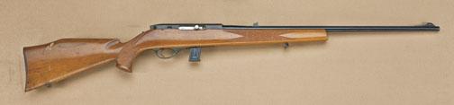Weatherby Mark 22, .22 caliber semi-automatic rifle, made in Italy. Very good used condition, 90-95% blue, some losses at edges and front of muzzle. Some dings, mars, scratches. Serial #03899. The action is good, bore is very good. A well made out of production arm that has seen some use and poor storage. Est: $225 - $450