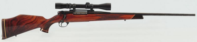 Weatherby 300 Magnum Mark V with Redfield 3x-9x Scope. Corrosion on Barrel from Storage. Ser# P55651. From the estate of the late Col. Billy Gregg from San Antonio, Texas.