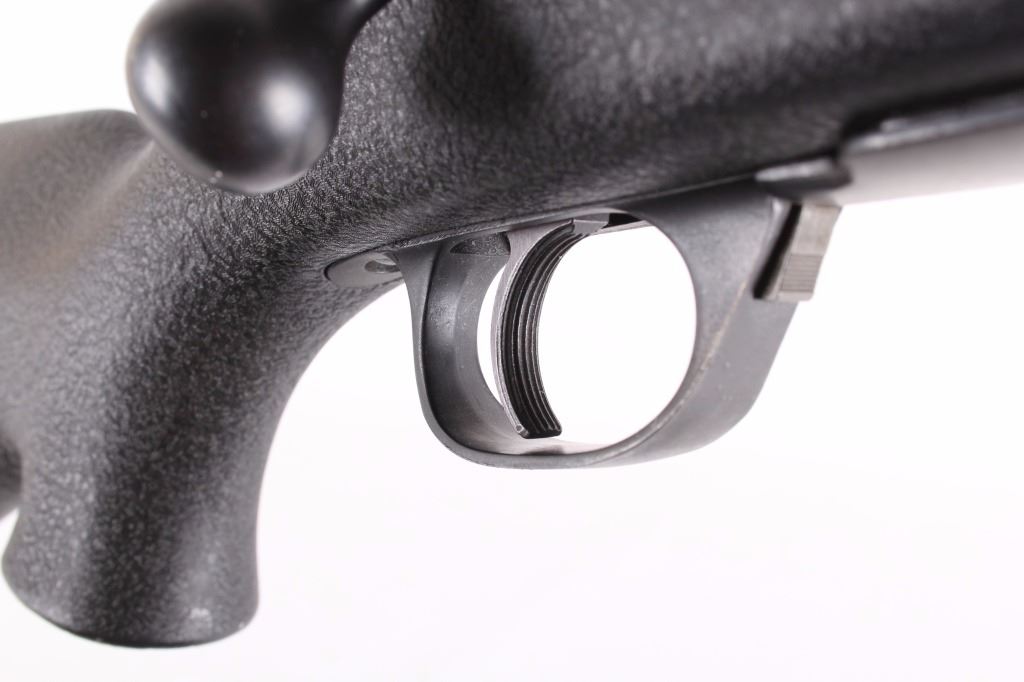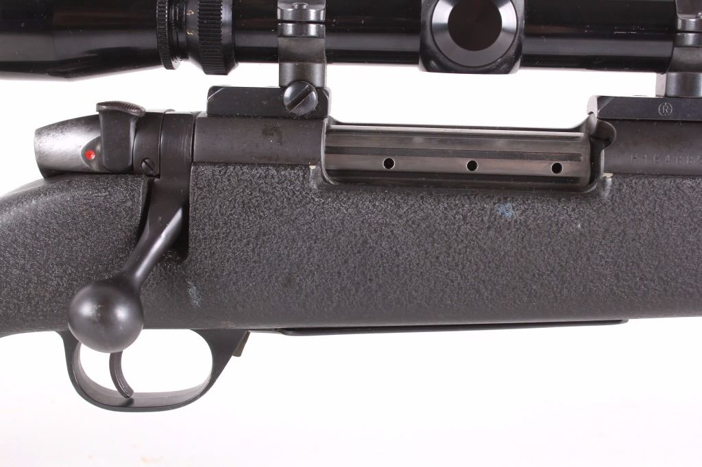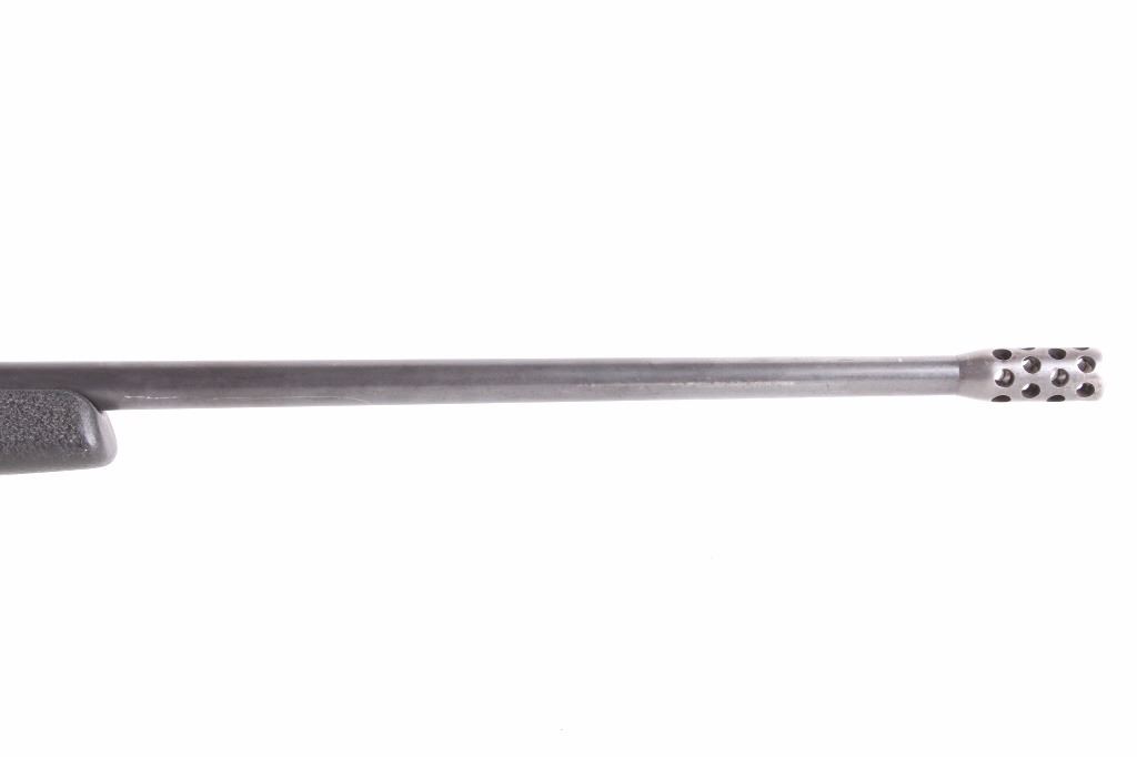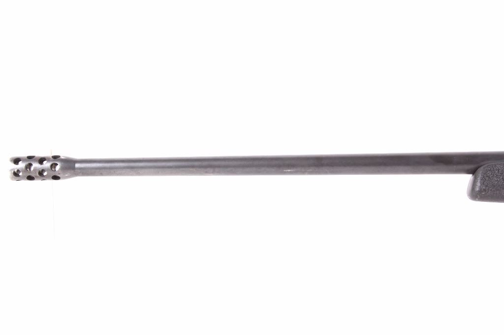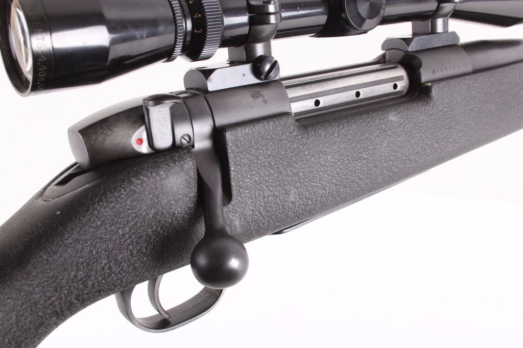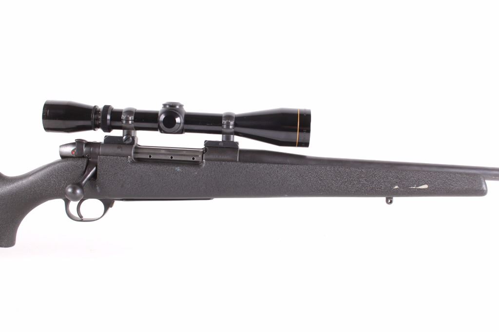 This lot features Weatherby Mark V in Weatherby .300 Weatherby Magnum with a Leopold 3x9 Vari-X II scope. This rifle features a synthetic Monte Carlo stock, 25 1/4" barrel, matte blued finish, and a muzzle brake. This is a Japanese rifle that shows much of the original bluing, with some wear on the barrel and bolt. The stock is in good condition with only a few minor handling marks overall. The scope has clear optics. The overall length is 46 1/2." The serial number is H164885. Modern Rifle. FFL transfer or NICS background check required