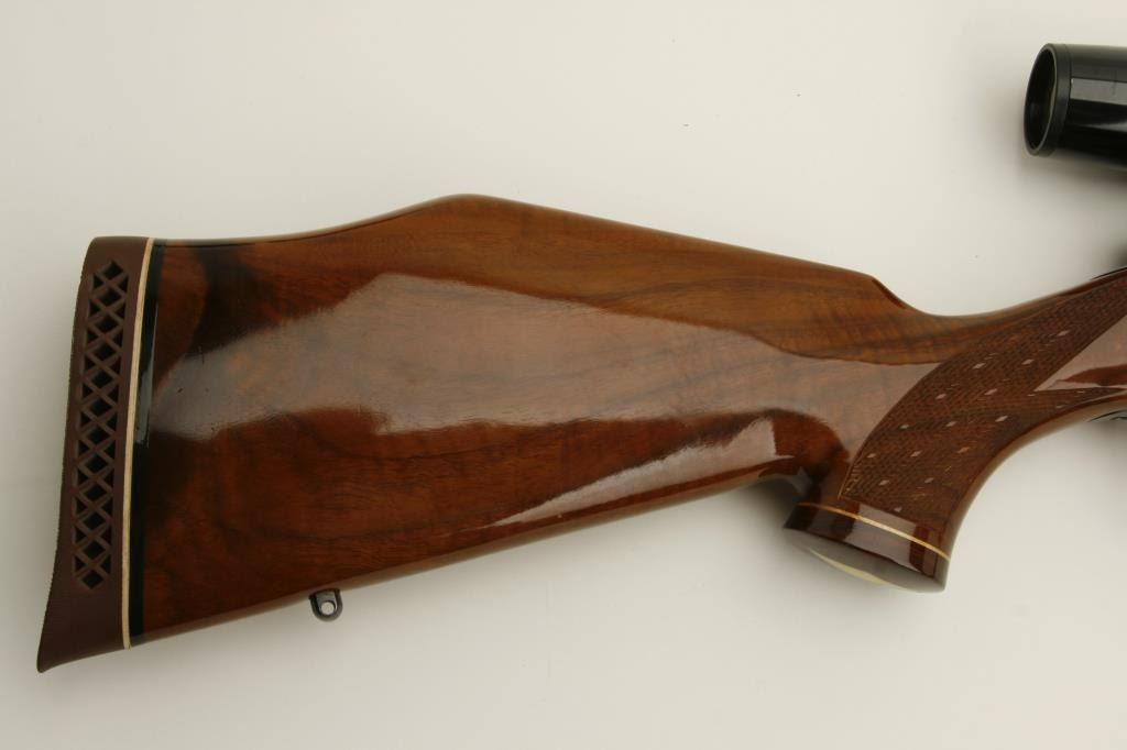 caliber, 26.5” barrel, blued finish, checkered deluxe wood stock, S/N H136418, in overall fine to excellent condition with fine bore, action, markings and stock. Mounted with a Bushnell ScopeChief VI scope with fine optics. (Modern). Est.: $900-$1,800.