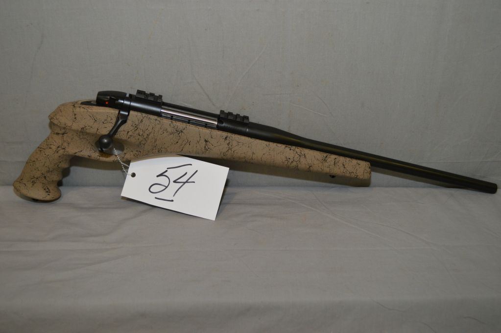 Weatherby Model Mark V ( CFP ) .22 - 250 Cal 5 Shot Bolt Action Silhouette Style Pistol w/ 406 mm bbl [ appears as new test fired, blued finish, no sights, but has rail style mounts, tan & black composite pistol grip stock w/ swivel posts ] Ser # BP007960 Restricted Handgun Cert # 18216350
