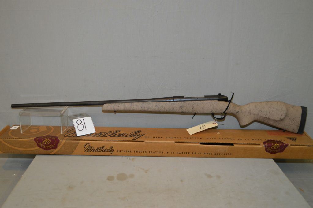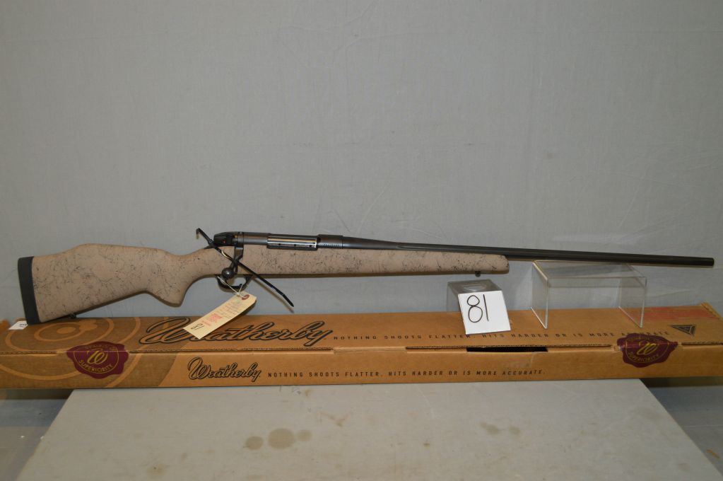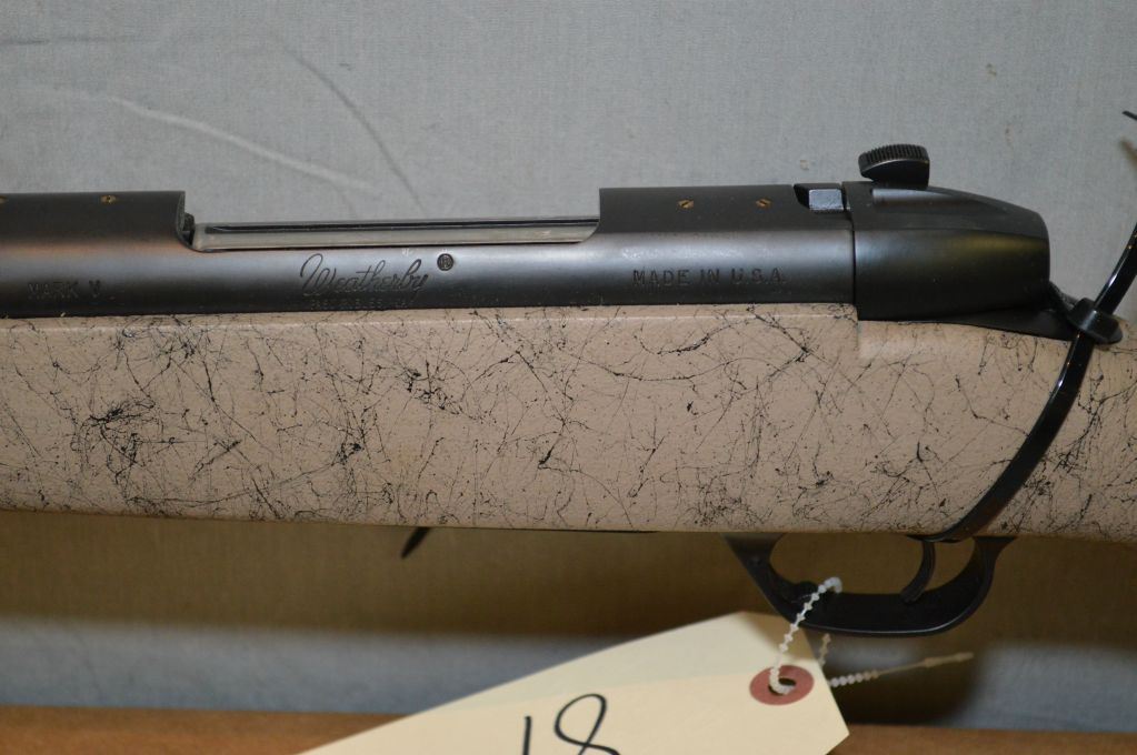 Weatherby Model Mark V Ultra Light .300 Wthby Mag cal Bolt Action Rifle w/ 26" fluted bbl [ N.I. Box w/booklet, blue finish, tan black composite pistol grip stock , w/ recoil pad ] Ser # PB 025021