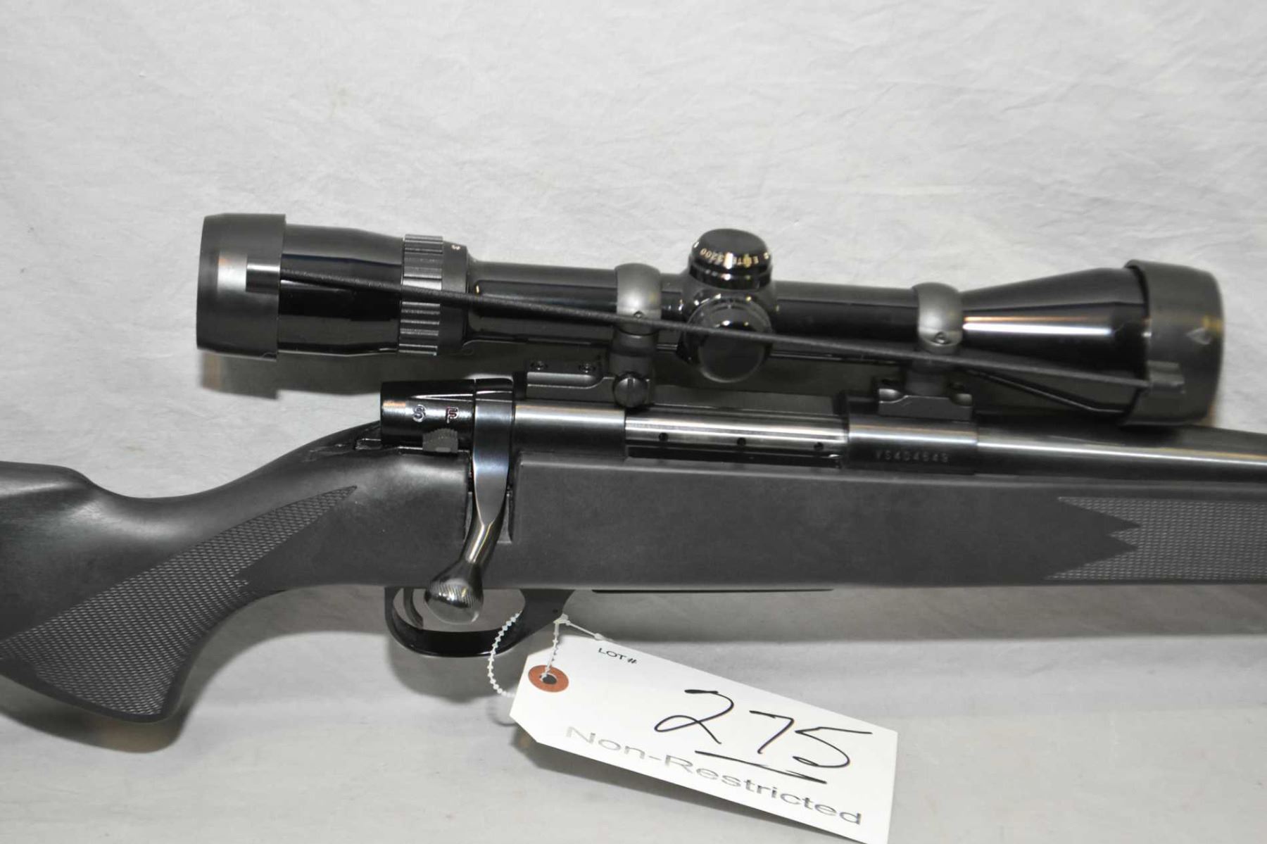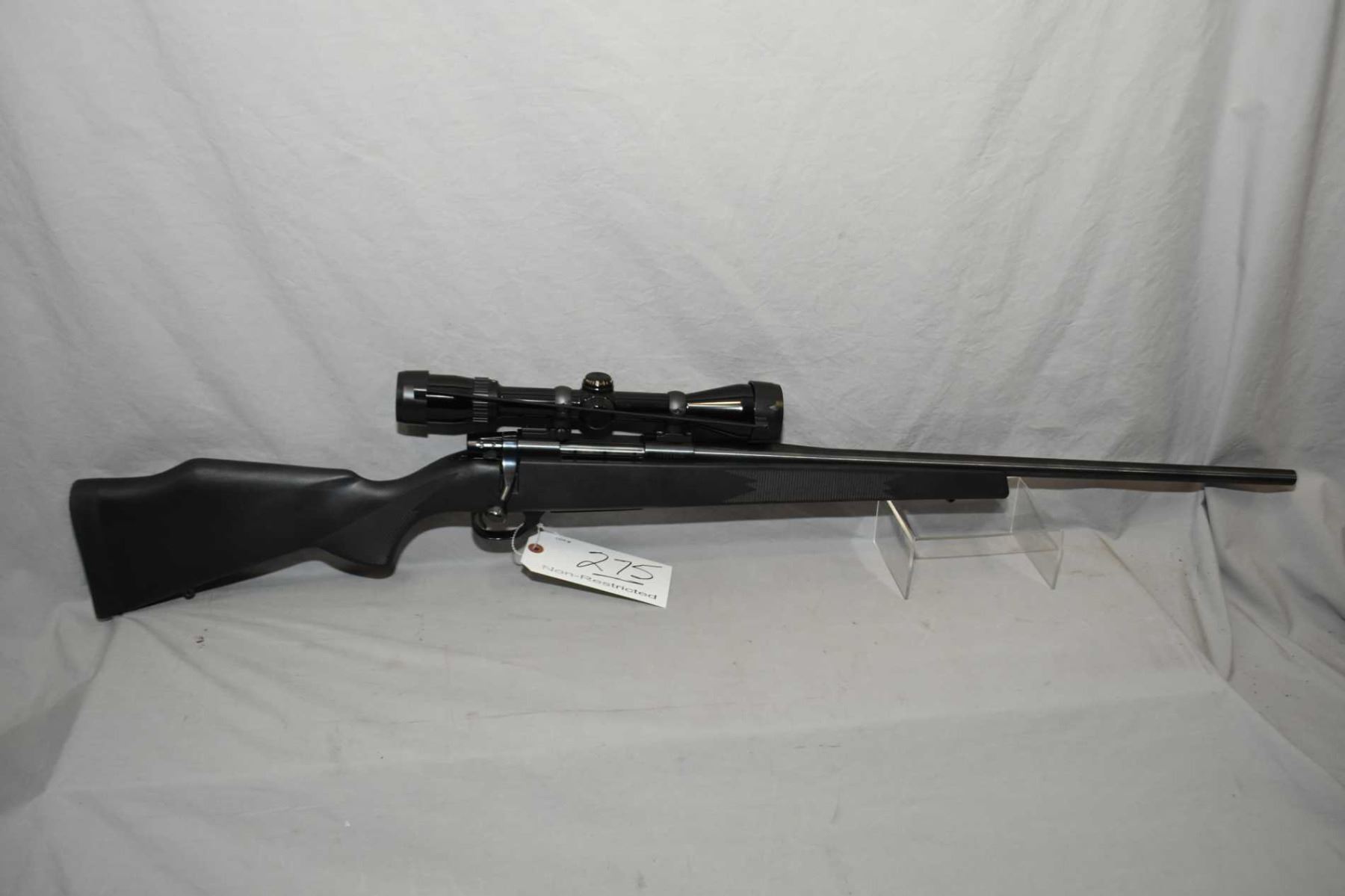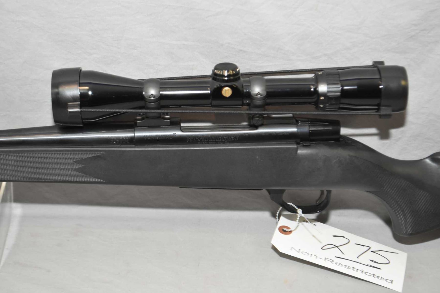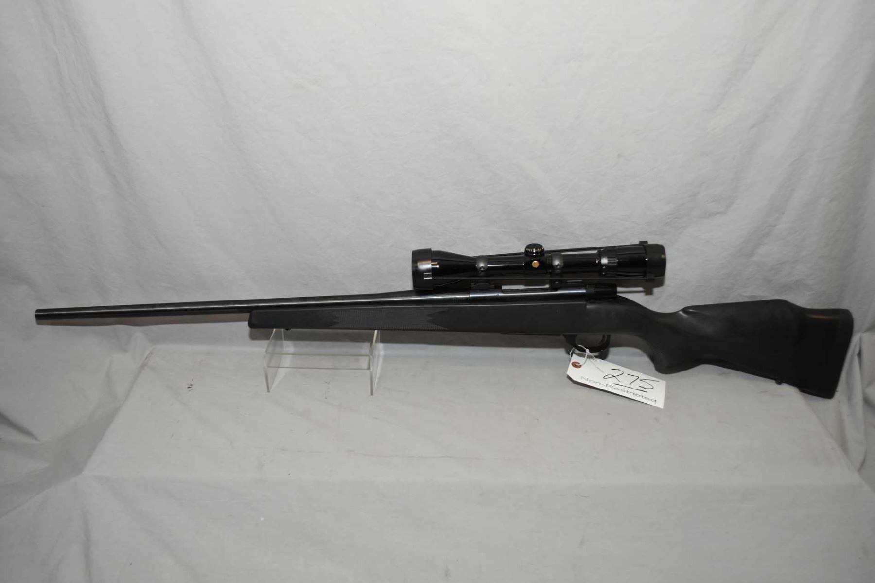 Weatherby Model Vanguard .243 Win Cal Bolt Action Rifle w/ 24" bbl [ appears excellent, blued finish, no sights, fitted w/ Bushnell Elite 3200 3 x 9 Variable Scope, in deluxe rings, with plastic caps, Weatherby black composite checkered pistol grip stock, w/ Weatherby recoil pad, sling studs ] Ser # VS404649