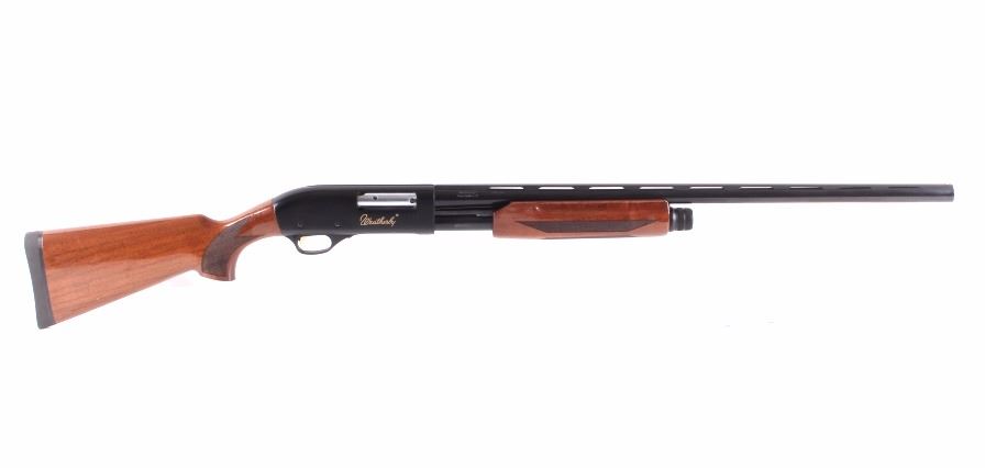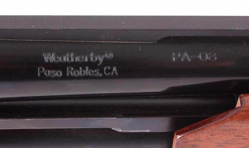 This is a Weatherby PA-08 12 gauge pump action shotgun, new and unfired in the box. The shotgun features a blued steel vented barrel and receiver with solid walnut hardwood stocks. The barrel is marked 12Ga. 2 3/4" & 3" Shotshells Made in Turkey and "Weatherby Paso Robles, CA PA-08". The Weatherby shotgun is in excellent condition. It measures 48" long with a 28" barrel. This is a modern manufactured long gun and requires NICS background check or FFL transfer.