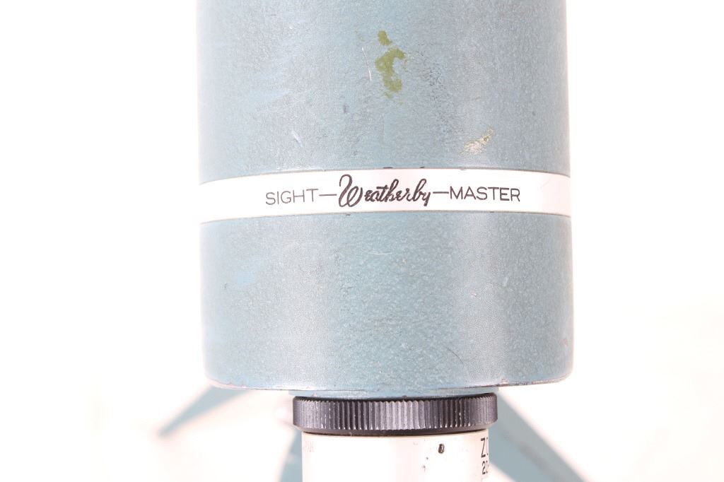 For your bidding pleasure is this Weatherby Sight Master 20x-45x Spotting Scope. This desirable spotting scope is made in Japan with Japanese optics. This is a vintage early 1970's model with a number of #6444 along the ring of the lens. The spotters scope is highly functional zooming properly from 20x - 45x and adjusts smoothly with crystal clear vision. The lense is a 60mm lens for a bright target. The bench tripod swivels has some problems adjusting but otherwise is in pristine condition. The measurements fully extended is 20" tall with the lens length at 12".