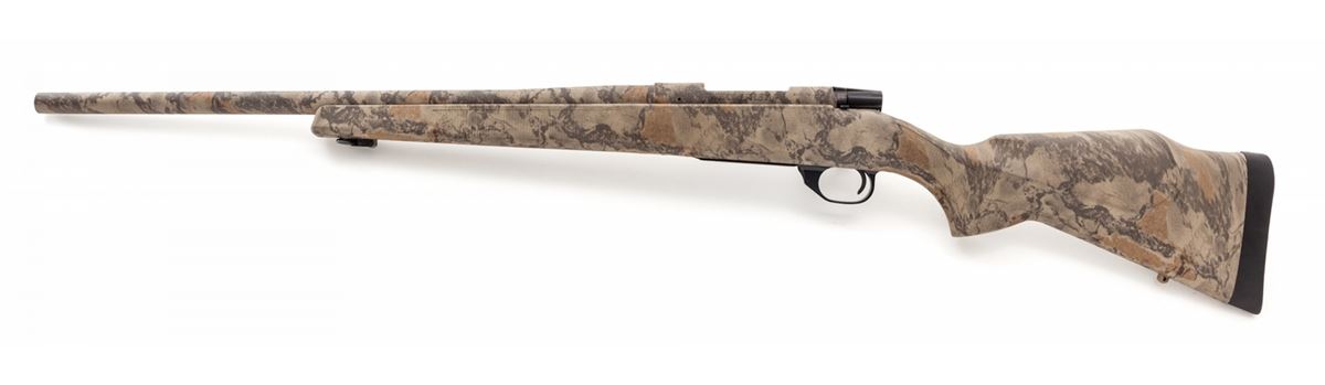 Weatherby Vanguard Predator Bolt Action Rifle, #VS348693, .223 Rem. cal., 22'' barrel, camouflage finish, checkered camouflage Monte Carlo composite stock with pistol grip, Weatherby recoil pad and gun lock, in box with matching end label and owner's manual. Condition is excellent, remaining new and unfired. Retails @ $821.95. Est.: $500-$750. (Modern) (Field Time)