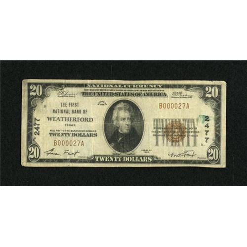 Weatherford, TX - $20 1929 Ty. 1 The First NB