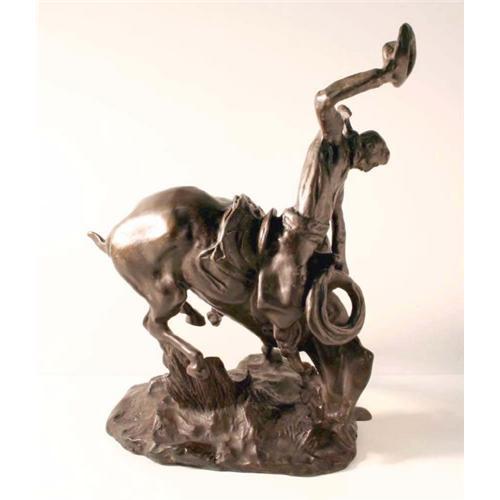This is a very impressive bronze that captures the intense action of the man and the horse. The accuracy of anatomy and muscle tension that Russell achieved is remarkable. This bronze measures 15? x 9? x 7?, is a great example of artistic mastery, and is set at a great price.