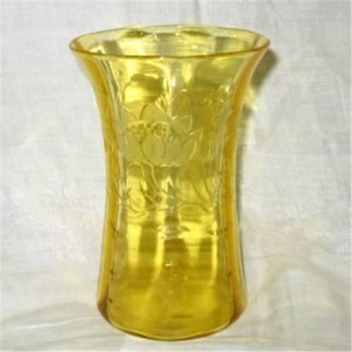Webb Transparent yellow wheel cut vase with pond lilies. Mint. 1940's.