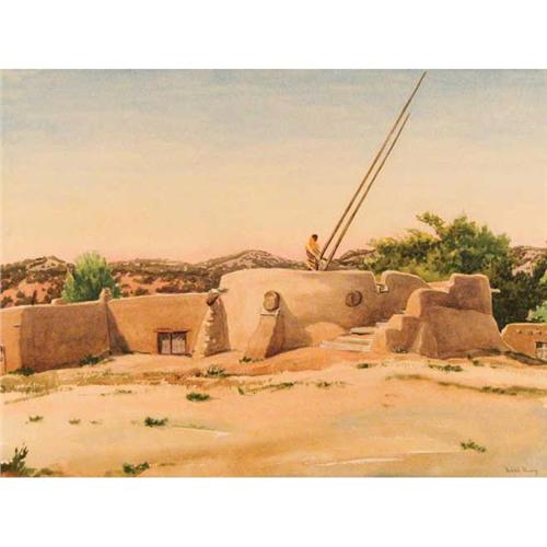 Webb Young (1913-2005) Watercolor "Nambe Kiva" Nambe Pueblo North of Sante Fe N.M.1998 Signed lower right 21 1/2" x 29"