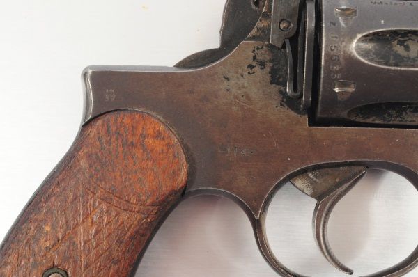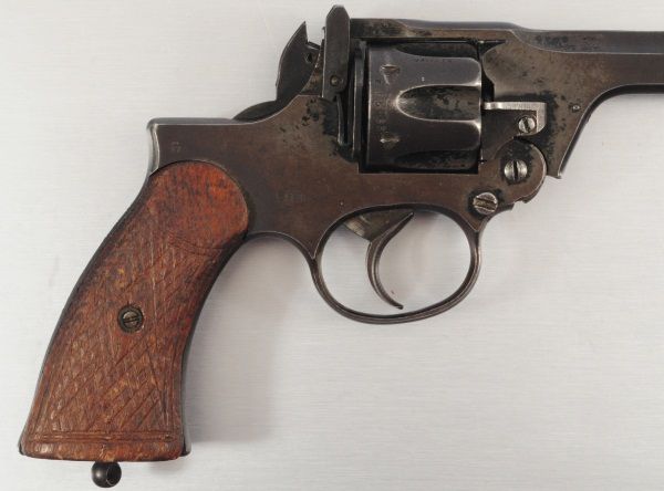 Webley .38 Revolver. Ser#'s ZD9976(Frame), ZD8680(Barrel), ZJ5533(Cylinder), Wooden Grips. Proof Marks Throughout.