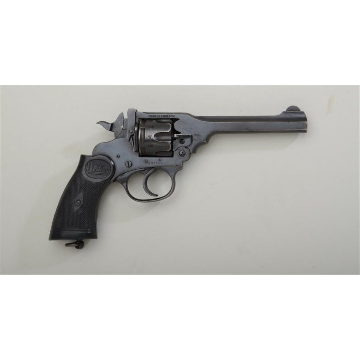 Webley Mark IV DA top break military revolver, .38 cal., 5” barrel, black finish, import-marked, c