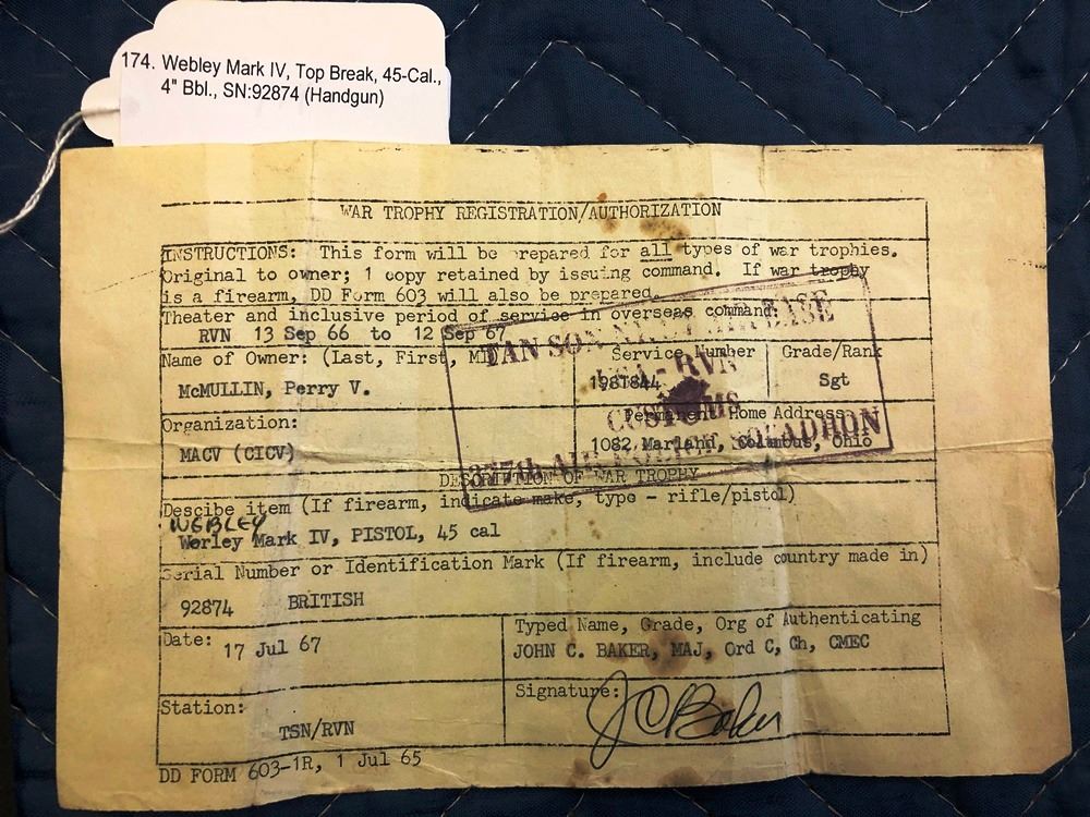 Webley Mark IV, Top Break, 45-Cal., 4 Bbl., SN:92874 w/War Trophy Reg/Auth/Export (Handgun)