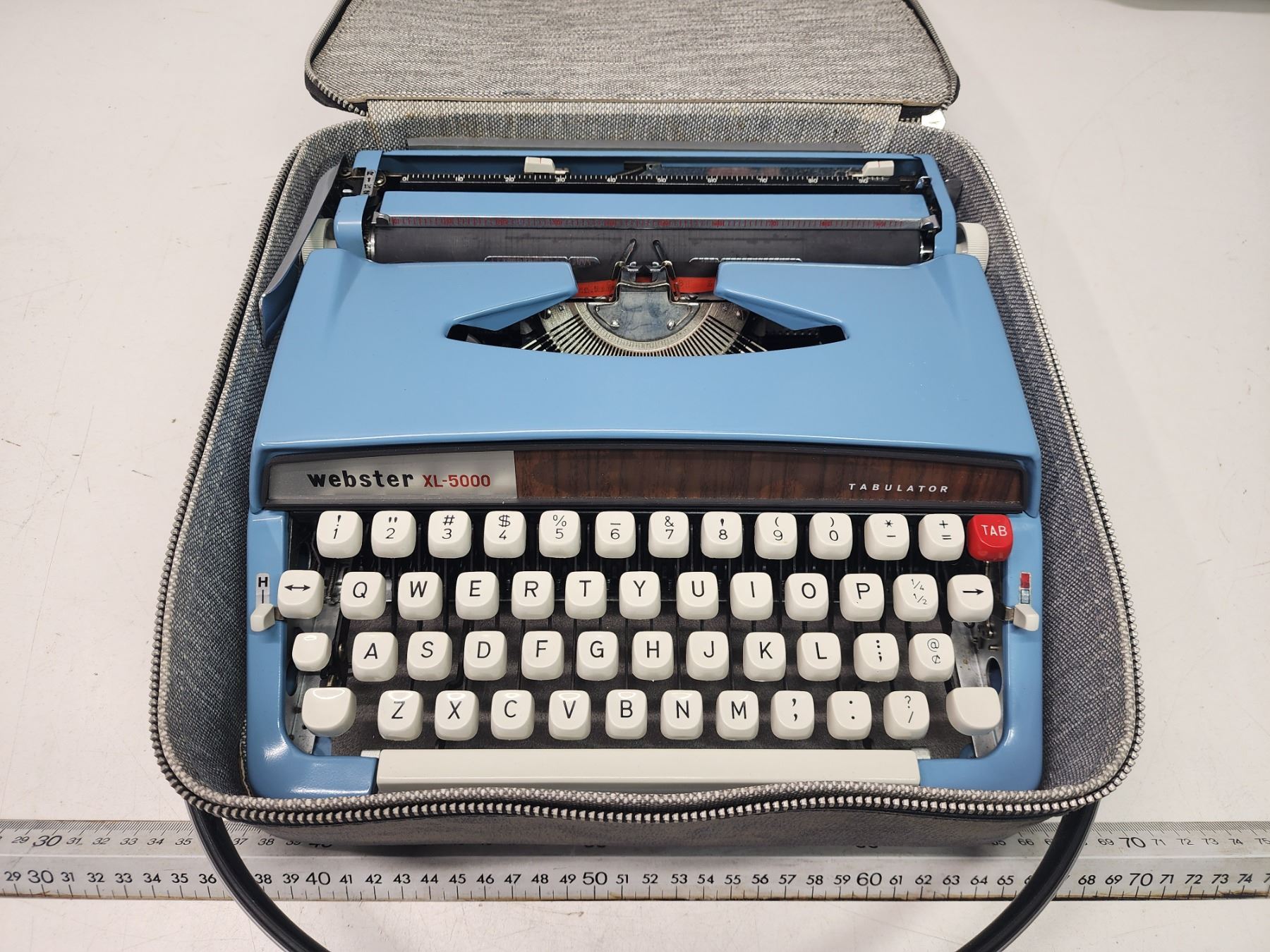 "Webster" portable blue typewriter, in carrying case - excellent condition