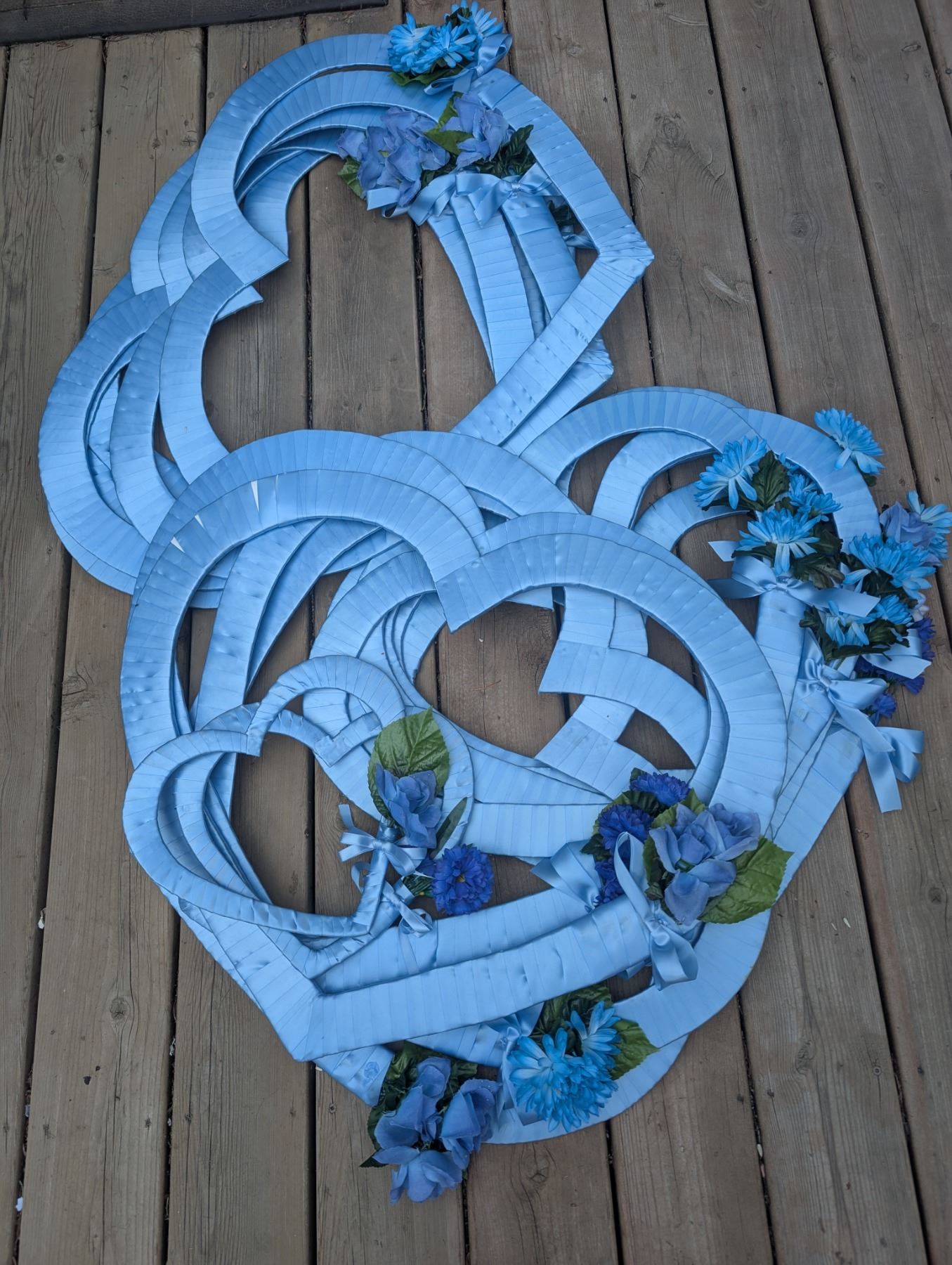 Wedding / Anniversary Hearts 10 large, 4 medium, 2 small. Wrapped in ribbon with artificial flowers