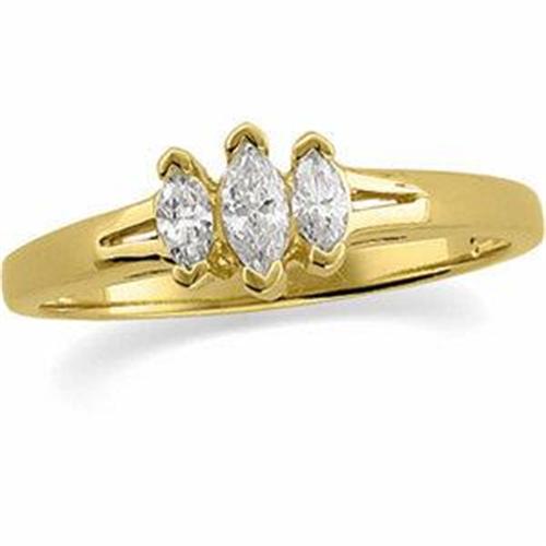 14k Yellow Gold THREE STONE ANNIVERSARY BAND featuring 3 SPARKLING MARQUISE CUT DIAMONDS. The Diamonds are all well matched, 'SI' Clarity, and FINE 'H' Color. The DIAMOND TOTAL WEIGHT = .33 CARATS! This beautiful Anniversary Wedding Band is a Size 6 and it can be resized either larger or smaller.