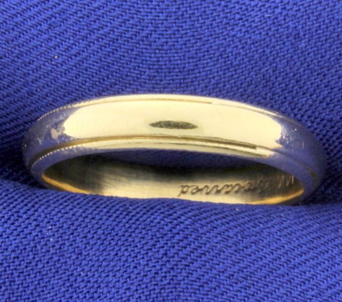 In 14K yellow gold it is 4mm thick and a size 9 1/2. 4.7g