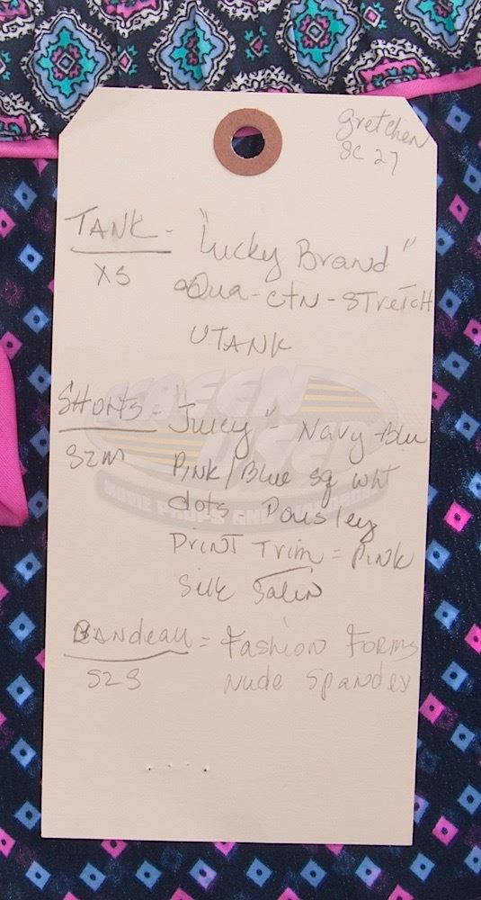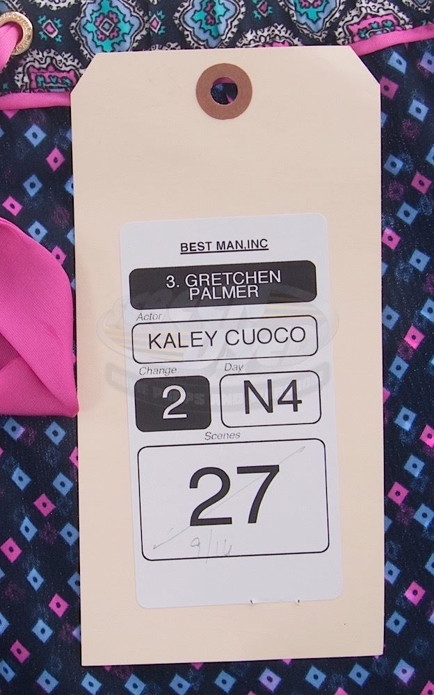 (Screen Gems, 2015) This outfit was acquired by the production for use by Kaley Cuoco-Sweeting as "Gretchen Palmer". The outfit consists of a size XS tank top and a pair of satin shorts. Included with the outfit is a production used costume tag that details the entire outfit, change and scene numbers used.