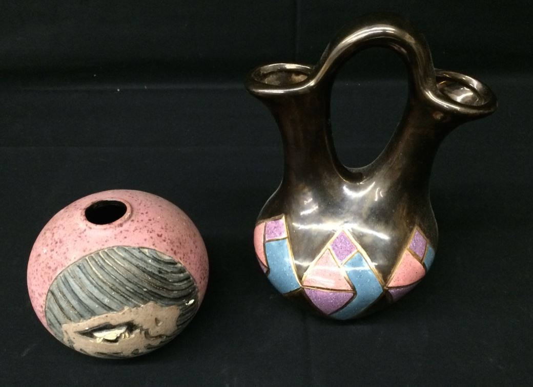 There is a wedding vase and a seed pot both for one money in this lot! The seed pot is 4.5” tall and the wedding vase is 9” tall. Unknown origin. Good condition. Shipping: There will be a $7 handling / packaging fee for shipping this lot. The actual cost of postage will be added on top of that.