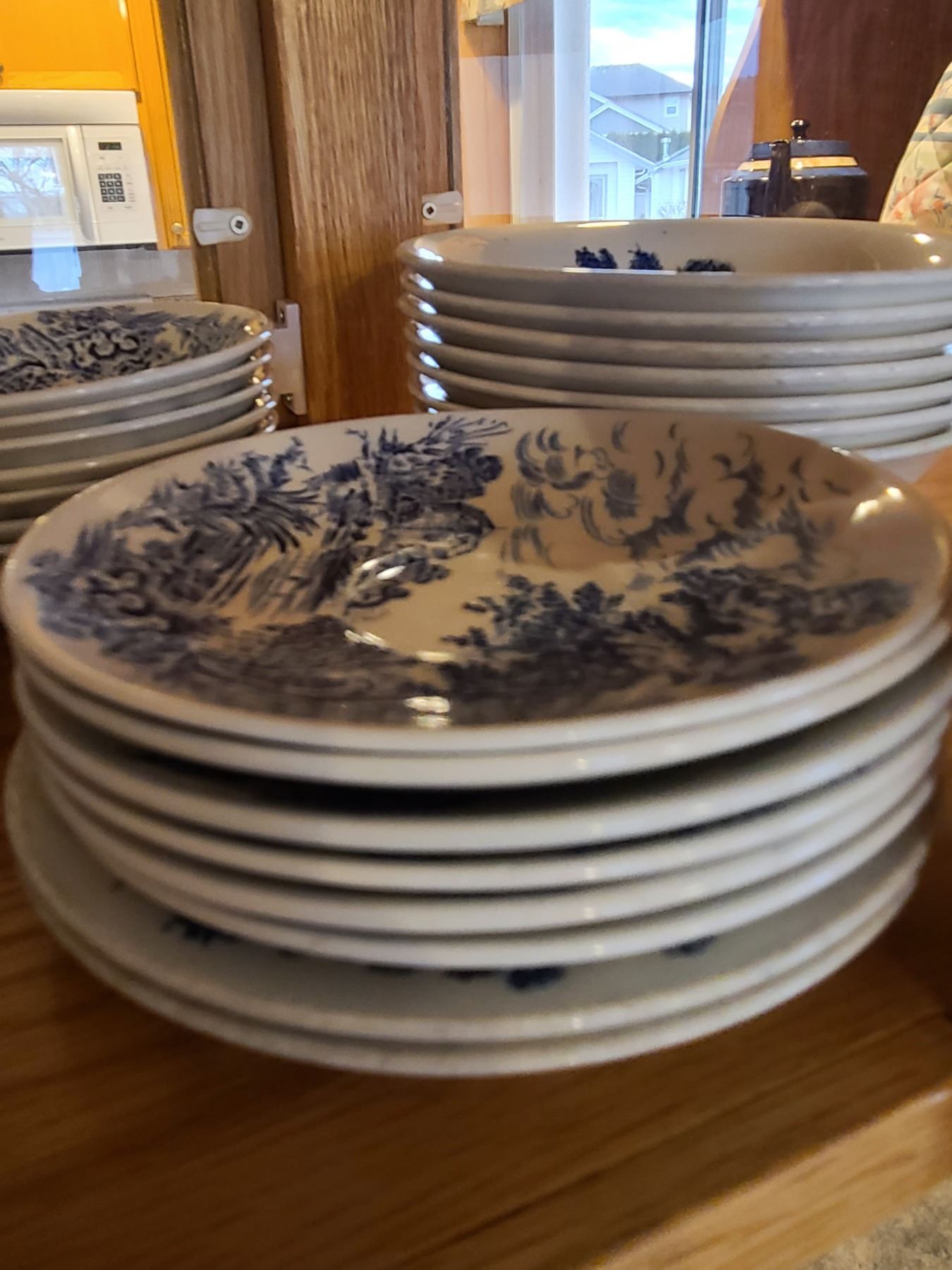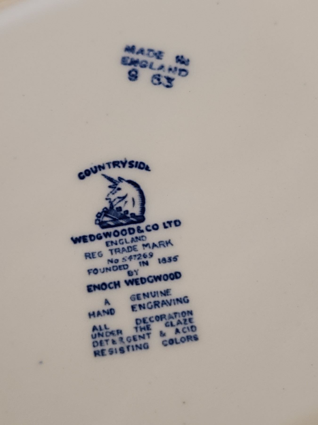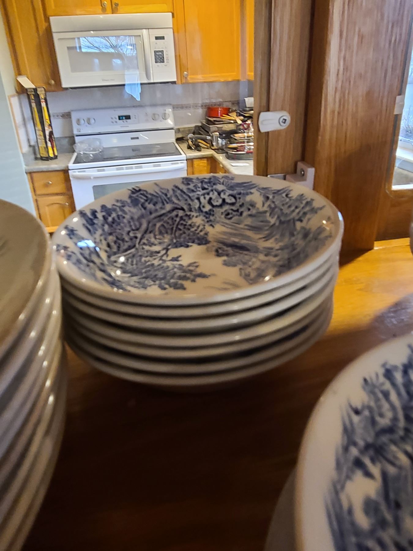 Wedgewood Countryside setting for 8 except small plates and 4 serving pieces. Bring packing supplies. Pickup at 9 am.