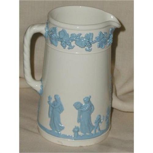 This is a very nice small pitcher by Wedgewood, it features the blue embossed design on cream,