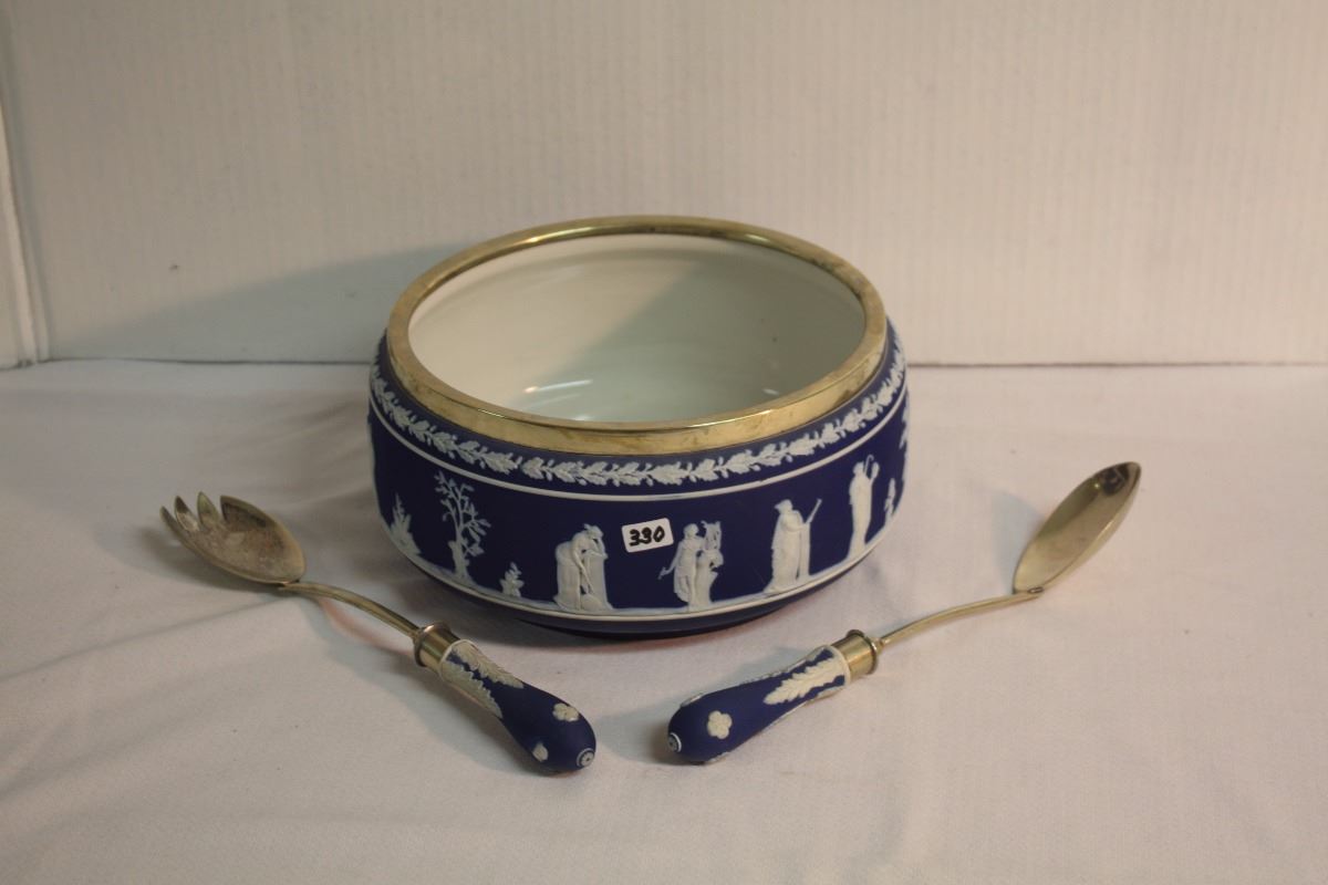 This is a Blue Wedgewood bowl that comes with matching fork and spoon- Very dark blue