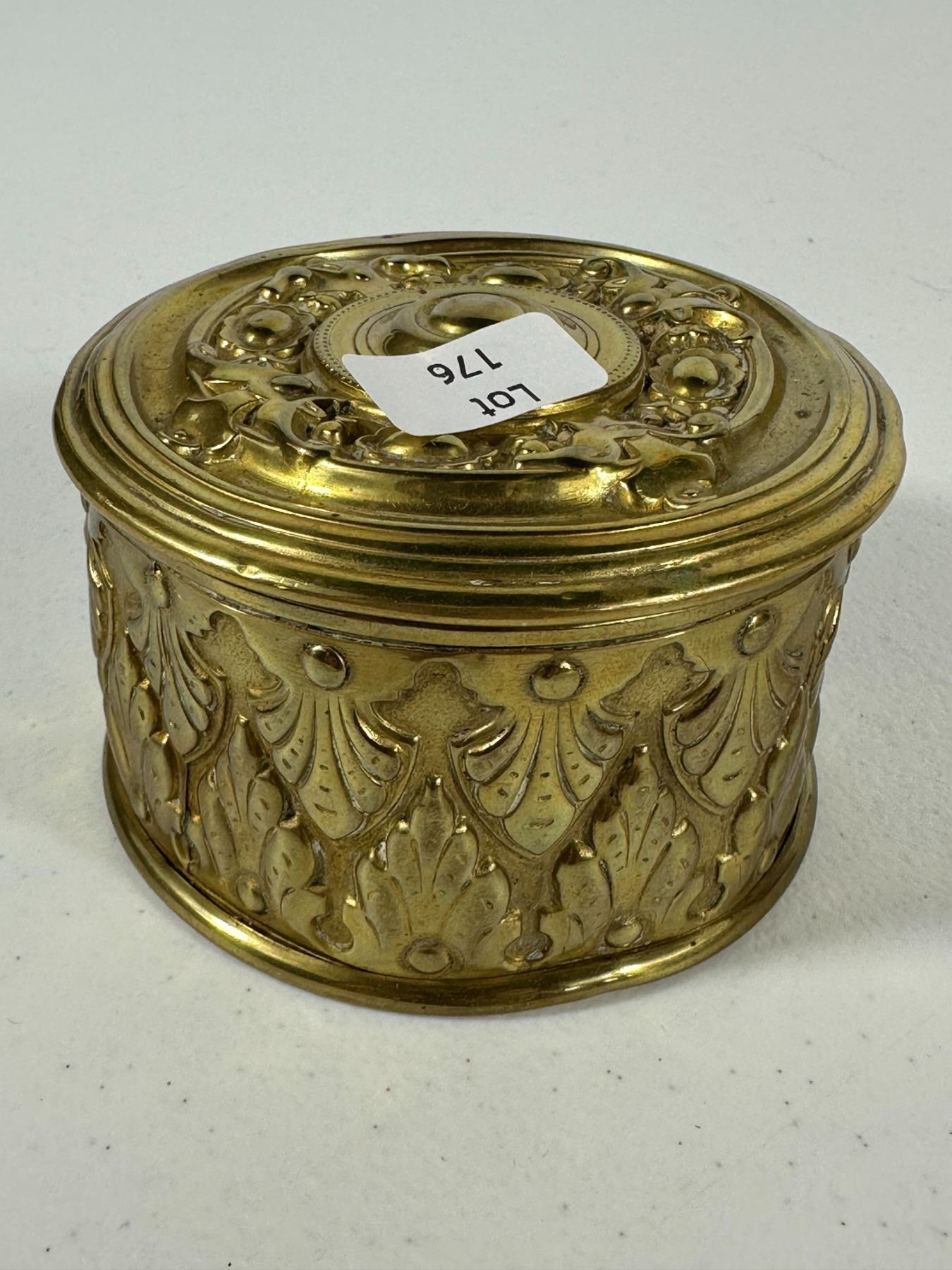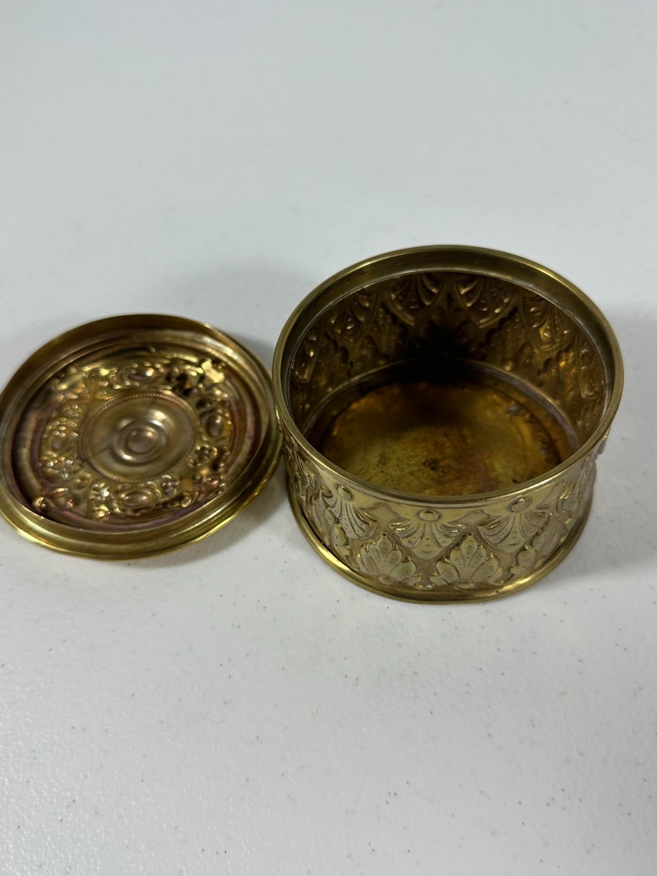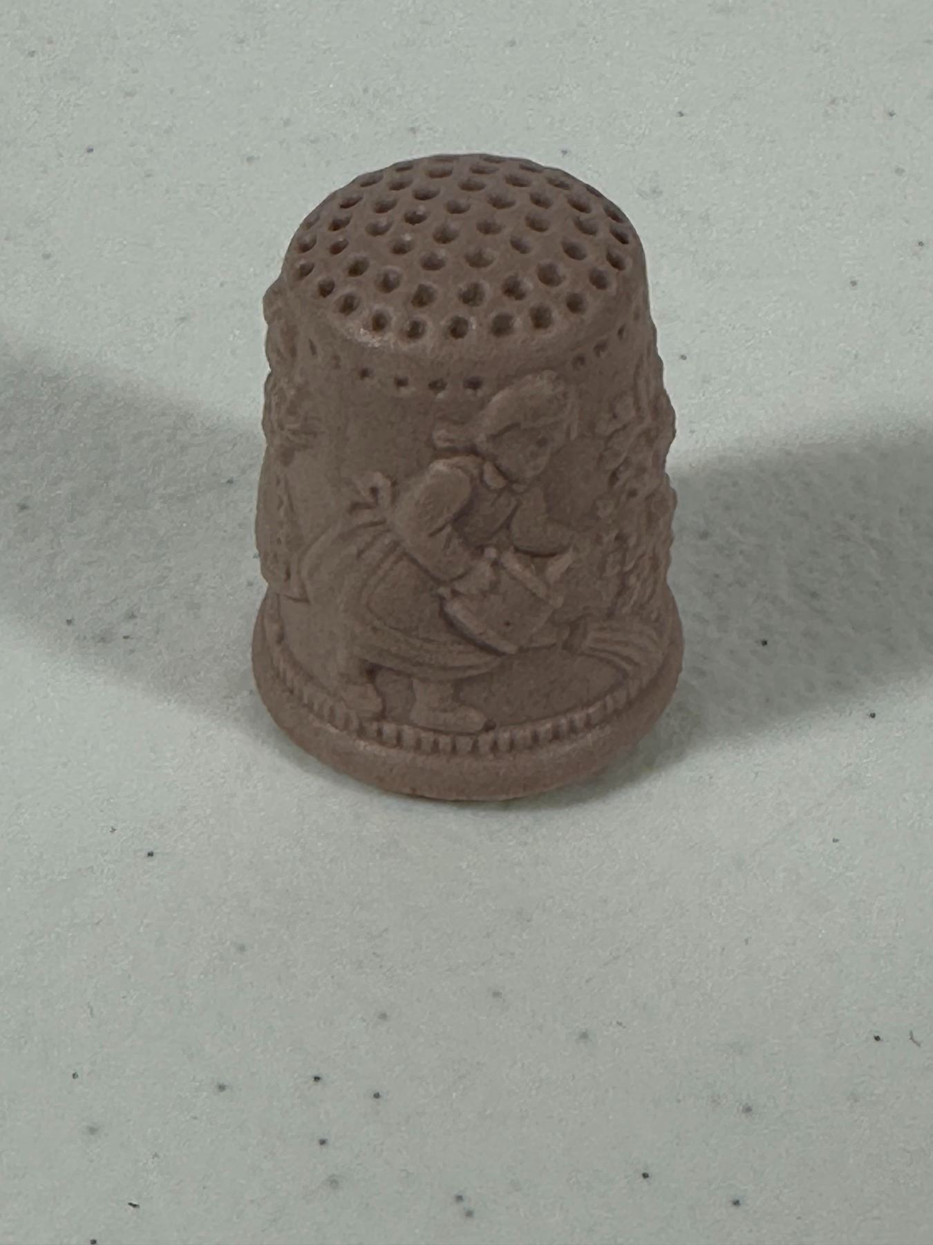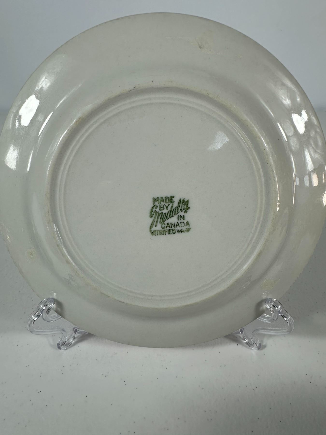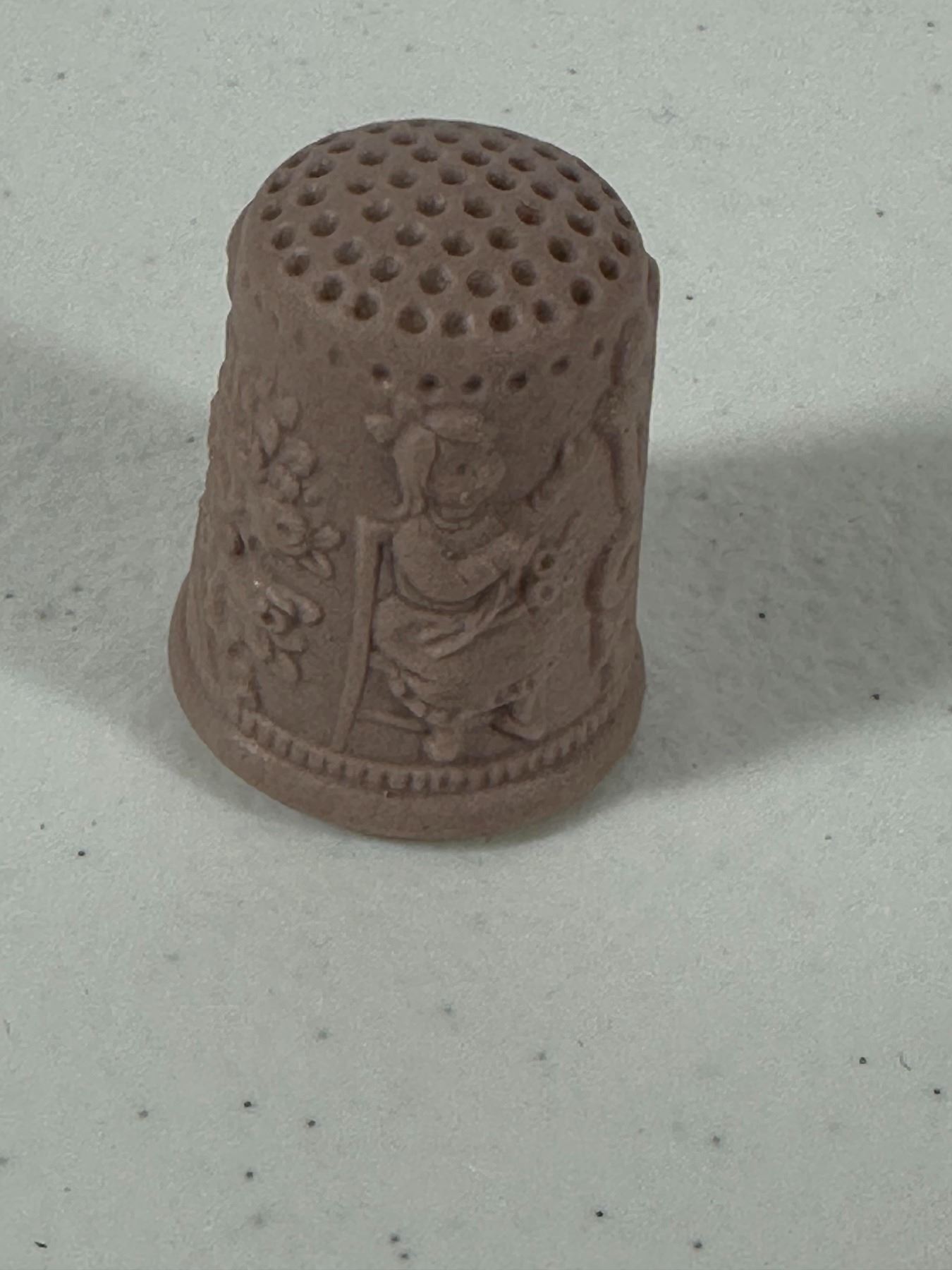 Mixed lot including three classic blue Wedgwood Jasperware trays with white relief, a pair of Medalta pottery plates in pink and blue, a small ornate metal trinket box, and a vintage sewing thimble.