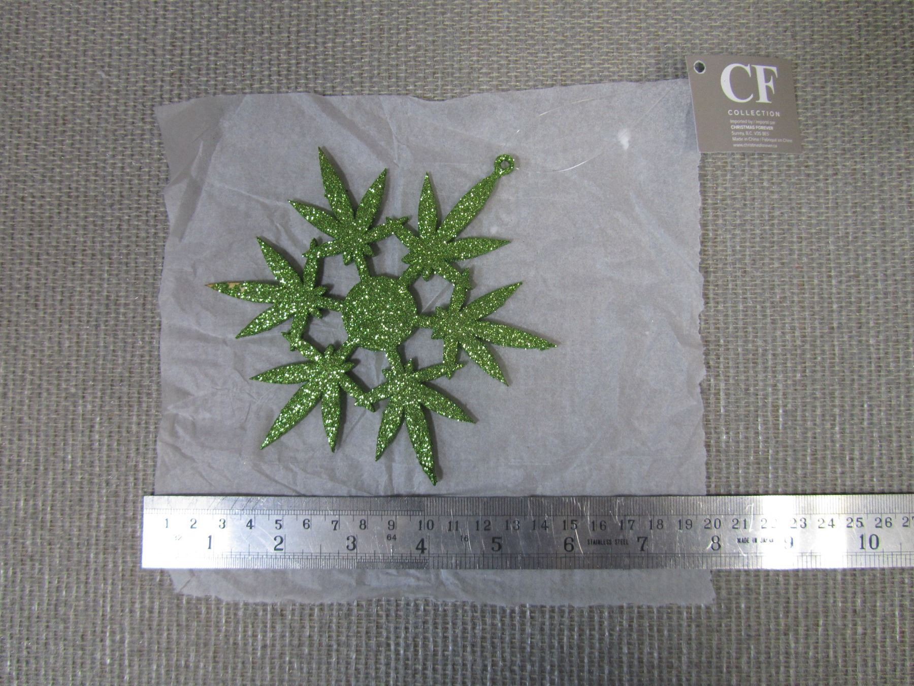 Weed-Shaped Snow Flake 6  Green Glitter Christmas Decorations, box of 30 pcs