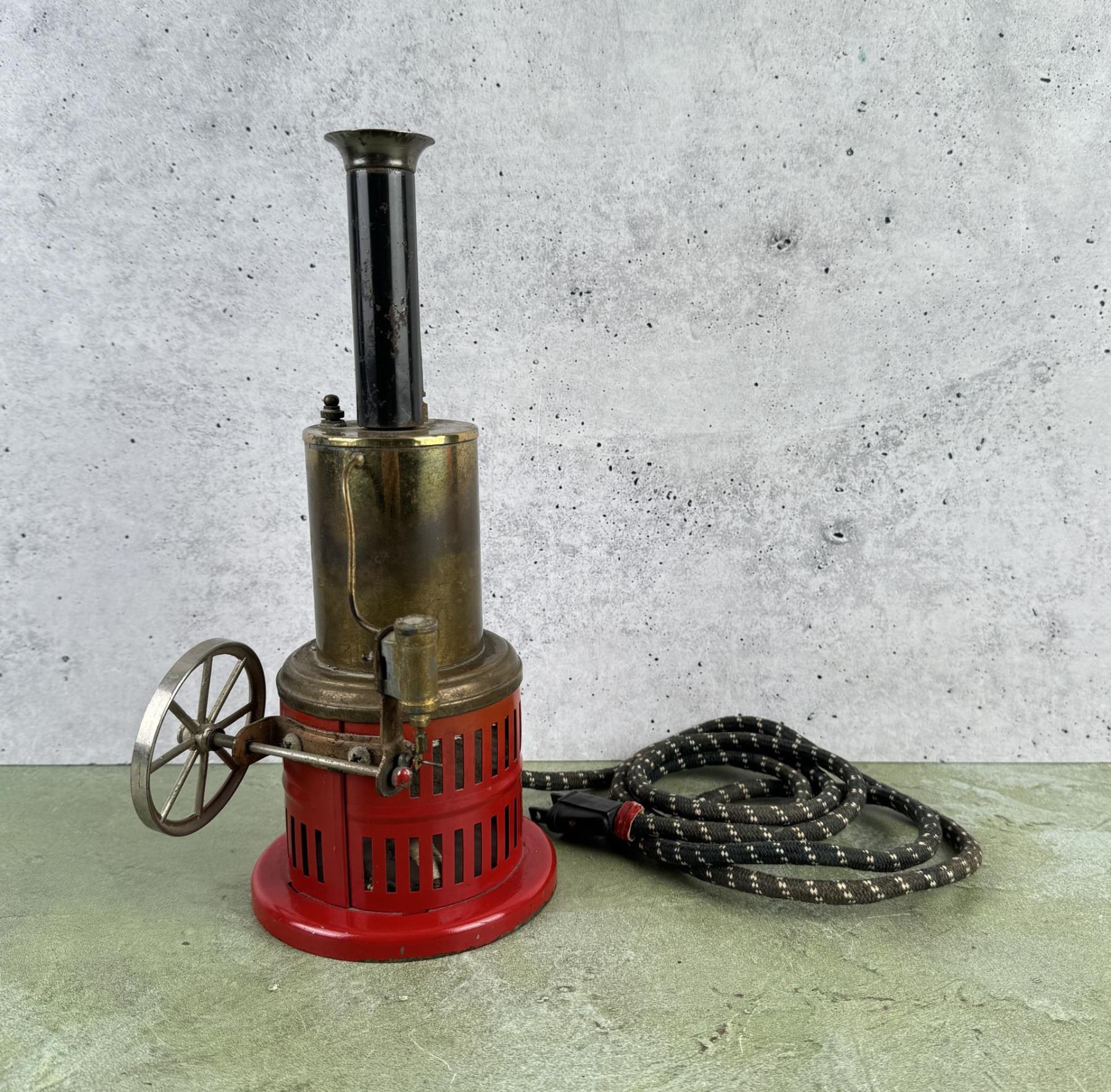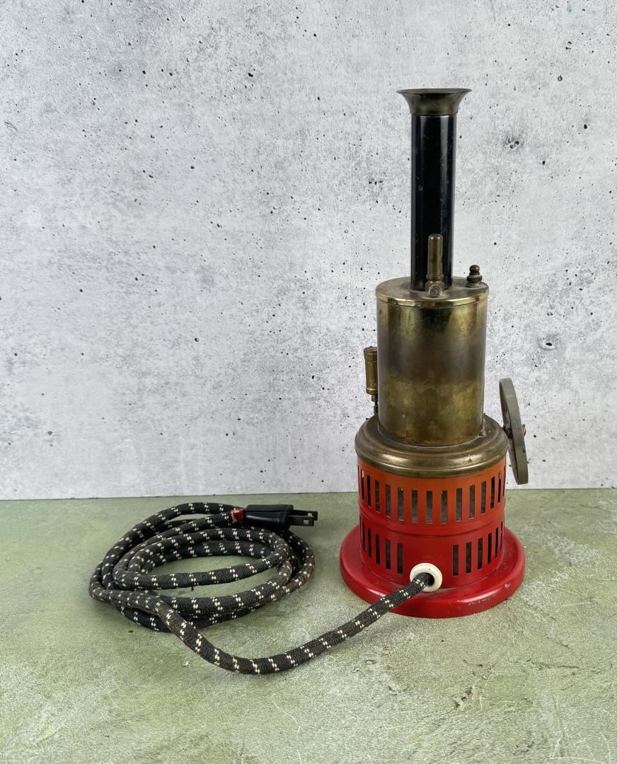 10 1/4" tall by 5 3/4" wide by 5 1/4" deep. Heats up when plugged in, untested with water.