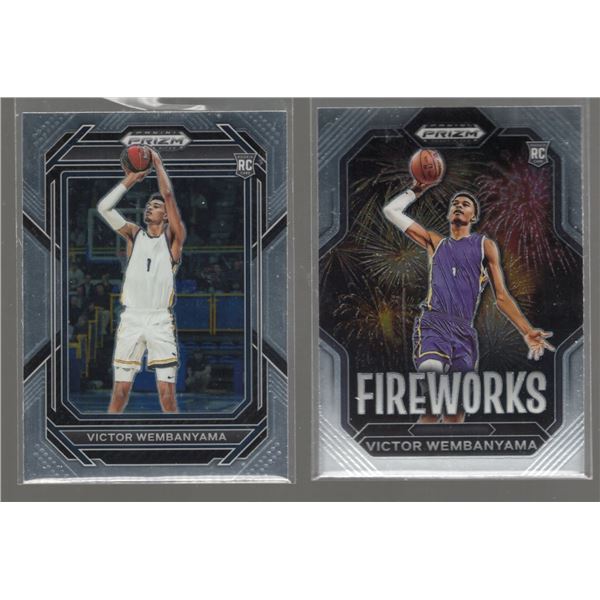 Lot of 2 Victor Wembanyama Rookie Cards 2023 Panini Prizm Draft Picks Fireworks, Base