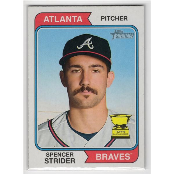 2023 Topps Heritage Baseball Blaster Box. Retro 1974 Topps design. Look for autograph & relic cards. 8 packs in this box and 9 Cards per pack.