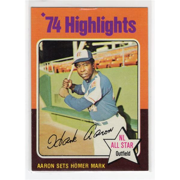 Hank Aaron 1975 Topps '74 Highlights Aaron Sets New All-Time Homer Mark Card number 1