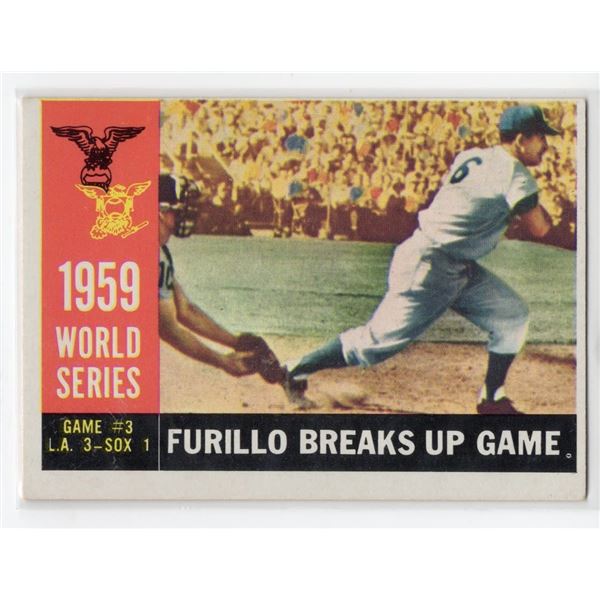 Lot of 3 1959 Topps World Series Highlights Insert Cards: 1959 World Series Highlights 1960 Topps Furillo Breaks Up Game 3 Card number 387 1959 World