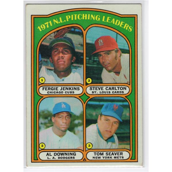 Fergie Jenkins, Steve Carlton, & Tom Seaver 1972 Topps '71 N.L. Pitching Leaders Card number 93