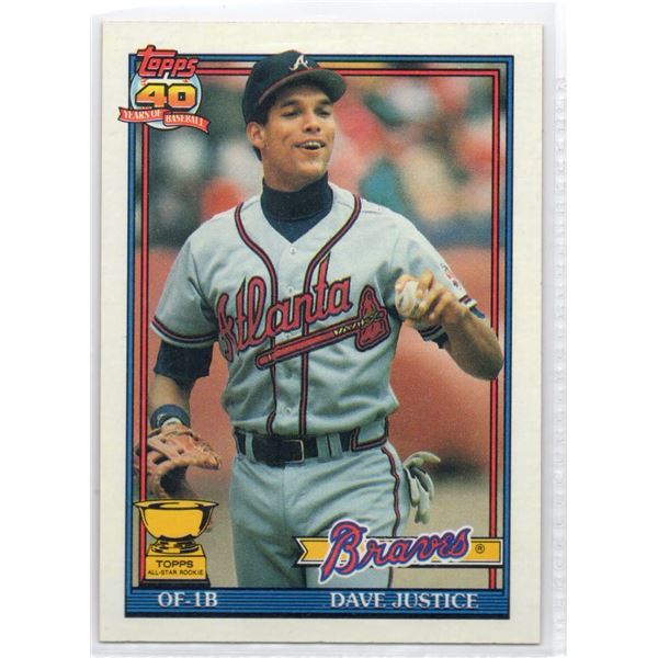 Dave Justice ROOKIE CARD 1991 Topps Card Number 329