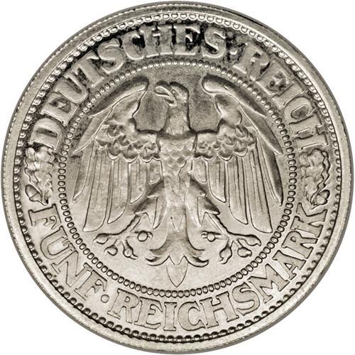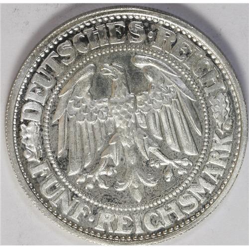 <B>Weimar Republic 5 Reichsmark 1932-D, </B></I>KM56, choice Proof, a beautiful example with unimpaired surfaces and great eye appeal.